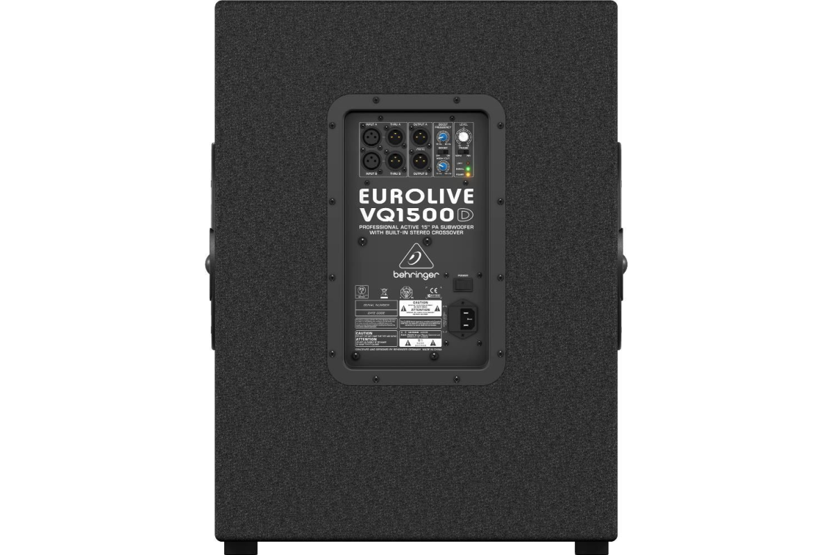 VQ1500D характеризується збалансованими XLR входами і виходами, а також збалансованими джек XLR Thru для підключення додаткових систем. Ручка підвищення частоти (Boost Frequency) призначена для регулювання частоти між 40 Гц і 90 Гц. Клацнувши перемикачем Boost, Ви додасте обраній частоті 6 дБ. Також сабвуфер має регулятор високих частот для управління високими частотами між 70 і 150 Гц, яка не зачіпає Thru або вихідні сигнали, а тільки сигнали спрямовані безпосередньо на сабвуфер. Світлодіоди відображають робочий стан, в тому числі харчування, наявність сигналу і перевантаження.