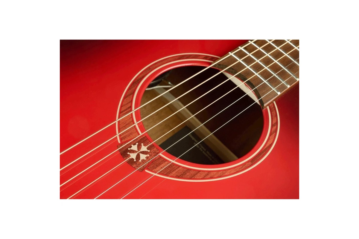Ця гітара – вершина майстерності. Завдяки високоякісним матеріалам вона забезпечує збалансоване та рівномірне звучання, що ідеально підходить для фінгерстайлу та виразної акордової гри. Верхня дека виконана з цілісного червоного кедра, а обичайки та нижня дека – з червоного дерева. Поєднання текстури та насиченого червоного кольору створює вражаючу візуальну естетику, що виділяється на будь-якій сцені.