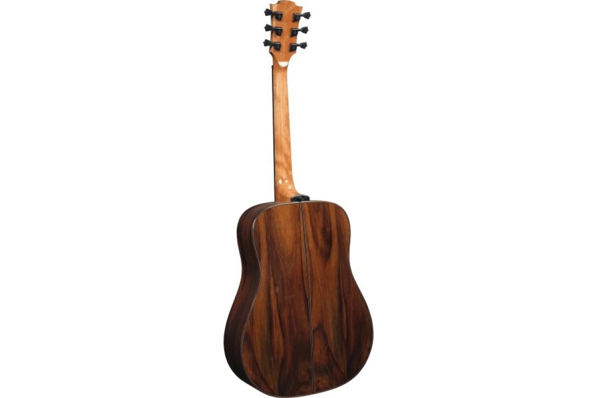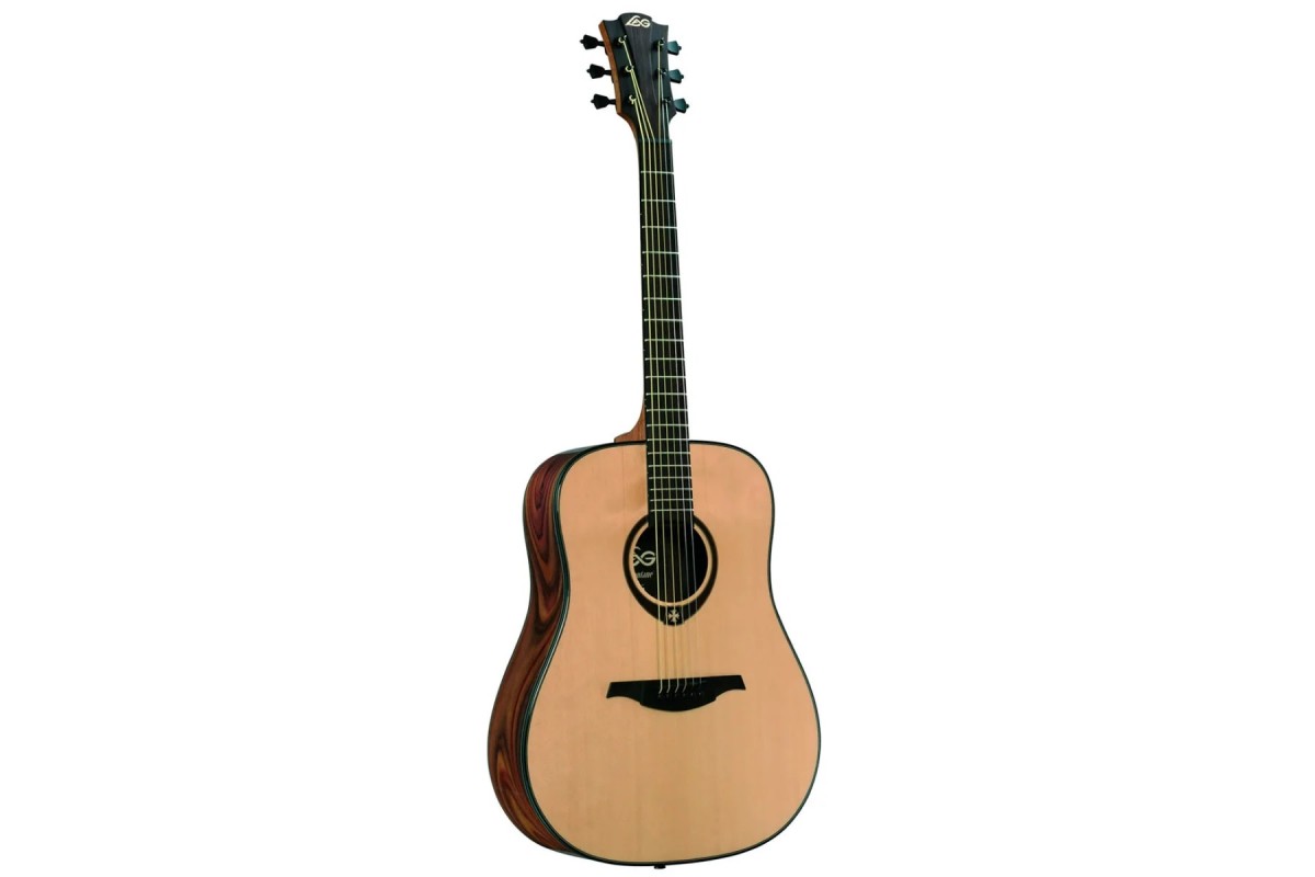 Акустична гітара Lag Tramontane T500D форми Dreadnought, верхня дека — цільна ялина АА, нижня дека і обичайки — палісандр, гриф — кайя, 20 ладів. палісандрове корпус з ялинової верхньою декою забезпечують широкий динамічний діапазон і дають ідеально яскраве звучання.