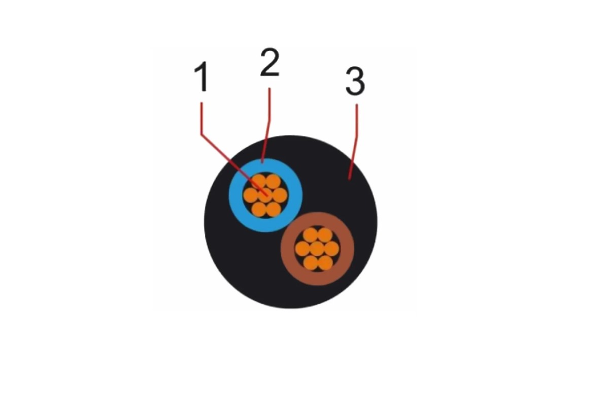 Зовнішня ізоляція: PVC, полівінілхлорид, твердість 50 А, щільність 0,6 мм