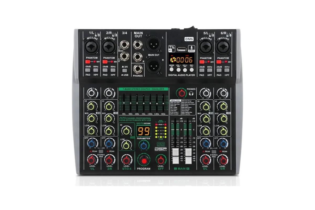 Аналоговий мікшерний пульт 4all Audio AK6 — це компактний і функціональний пристрій, який поєднує в собі базові можливості для мікшування з сучасними функціями, такими як вбудований DSP-процесор, Bluetooth та USB-програвач. Цей пульт ідеально підходить для невеликих студій, репетиційних баз, домашніх записів або живих виступів.