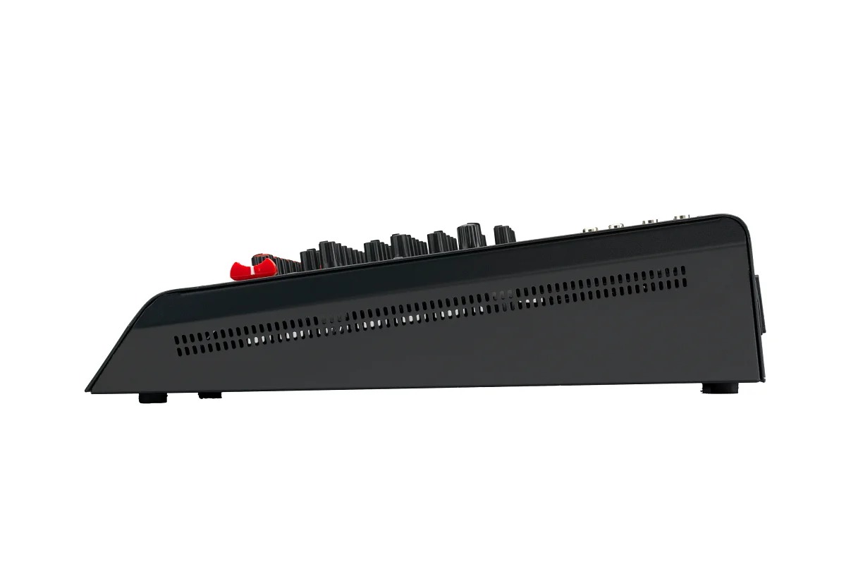 Надійний моніторинг та керування: AUX-посилання зі стереозворотом, панорама на кожному каналі, входи та виходи RCA, глобальне фантомне живлення та 8-сегментний світлодіодний індикатор рівня для основного міксу