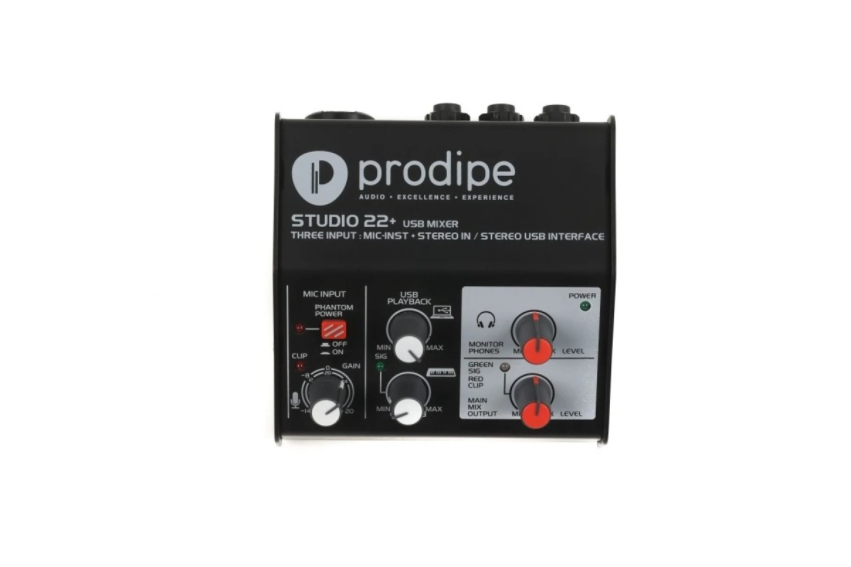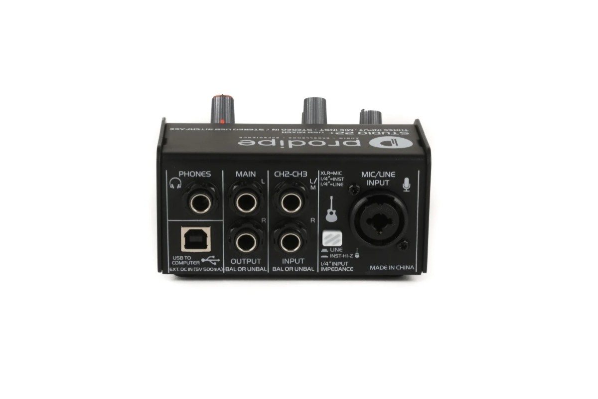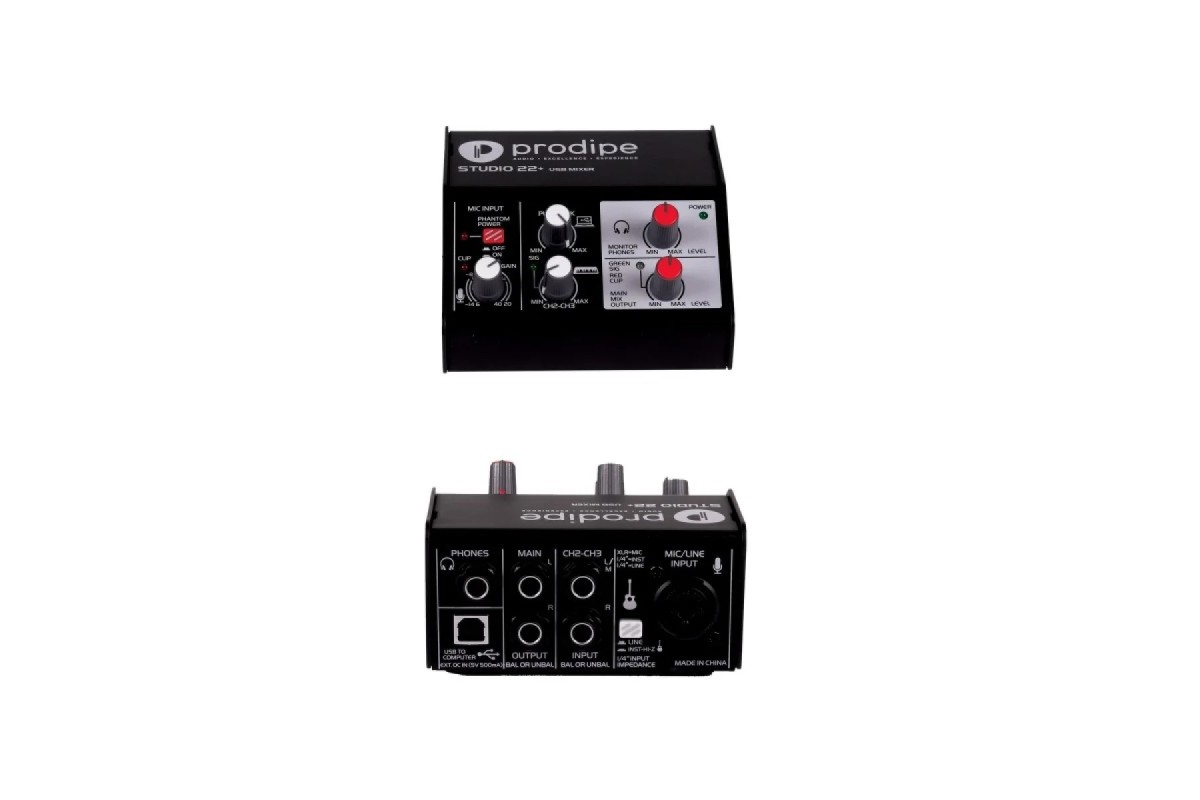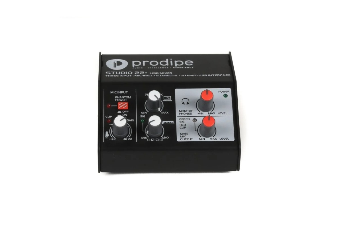 USB-аудіоінтерфейс Prodipe Studio 22+ USB аудіо інтерфейс: два комбінованих аудіо входу + 1 USB вхід/вихід і два виходи аудіо стерео. Studio22+ нагоді під час будь-яких репетицій: на роботі, вдома або на сцені. Сумісний з CUBASE, PRO TOOLS і будь-яким іншим. Prodipe Studio 22+ це незамінний друг кожному музикантові! Традиційно, увагу Prodipe сконцентровано на музику і музикантів. Саме тому вони розробили цей багатофункціональний прилад: Studio 22+. Studio 22+ це не просто високоякісний аудіо інтерфейс, обладнаний двома XLR/Jack роз'ємами, з'єднаними з інтерфейсом USB 2.0 interface. Два основних аналогових виходи (JACK) означають, що при використанні Studio 22+ для аудіо, можна управляти рівнем сигналу незалежно. Репетиції, домашні заняття, студія виступ – Studio 22+ це прилад, який повинен бути під рукою у будь-якого музиканта щодня. Ось кілька прикладів того, як може застосовуватися Studio 22+