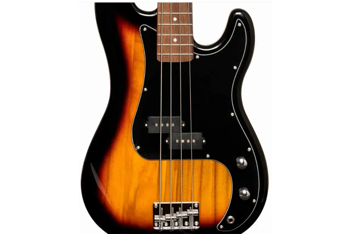 STAGG SBP-30 - електрична бас-гітара у стандартному олдскульному дизайні Precision Bass. Корпус цієї бас-гітари зроблений з павловнії, гриф із твердого клена з болтовим кріпленням, накладка – палісандр, кількість ладів – 20. Встановлений звукознімач має одну розщеплену котушку. Представлений інструмент виконаний у кольорі санберст із чорним 3-шаровим пікгардом.