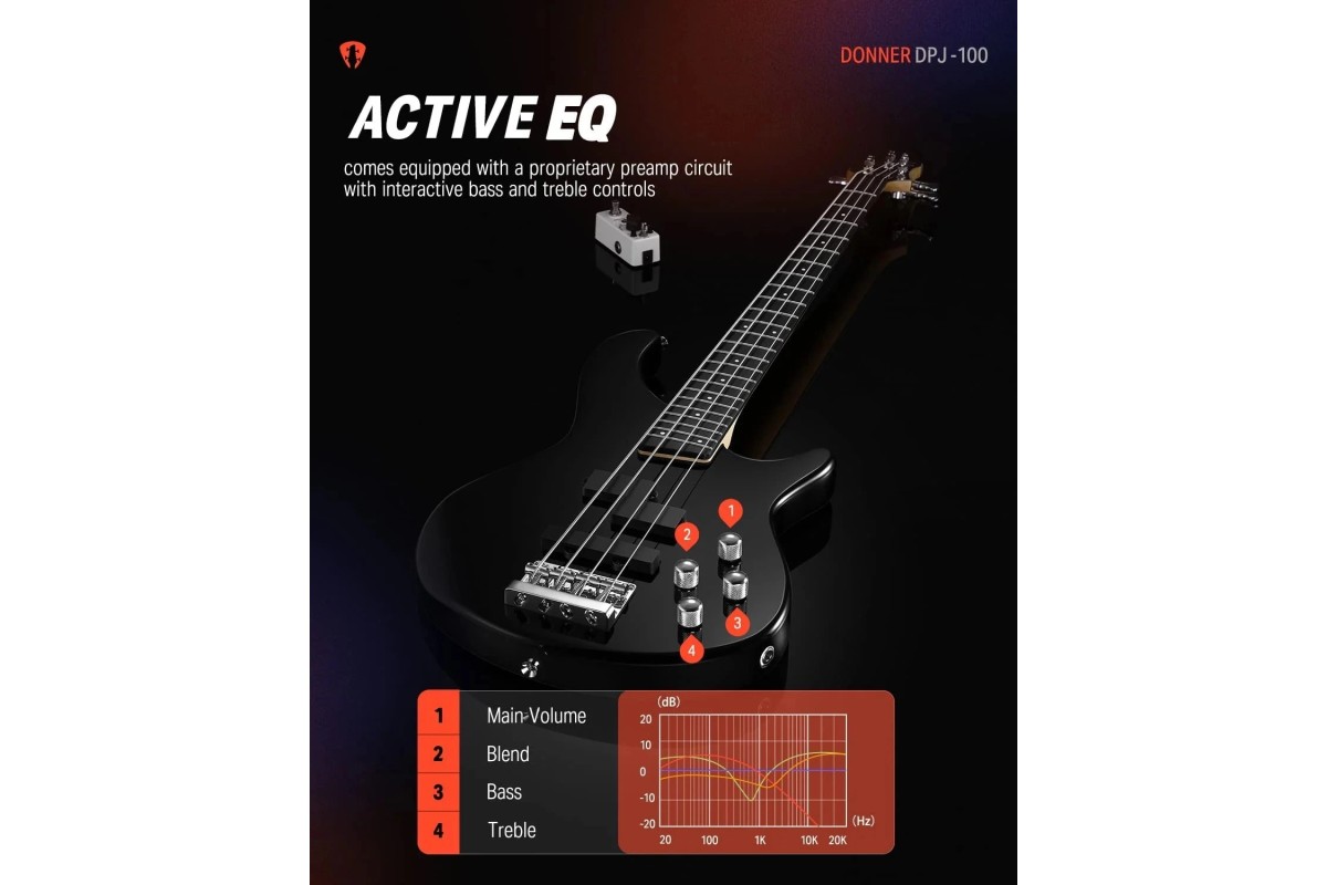 У вас є потужні можливості для налаштування звуку та контролю шуму з активним підсилювачем DONNER з індивідуальним 4-смуговим еквалайзером.