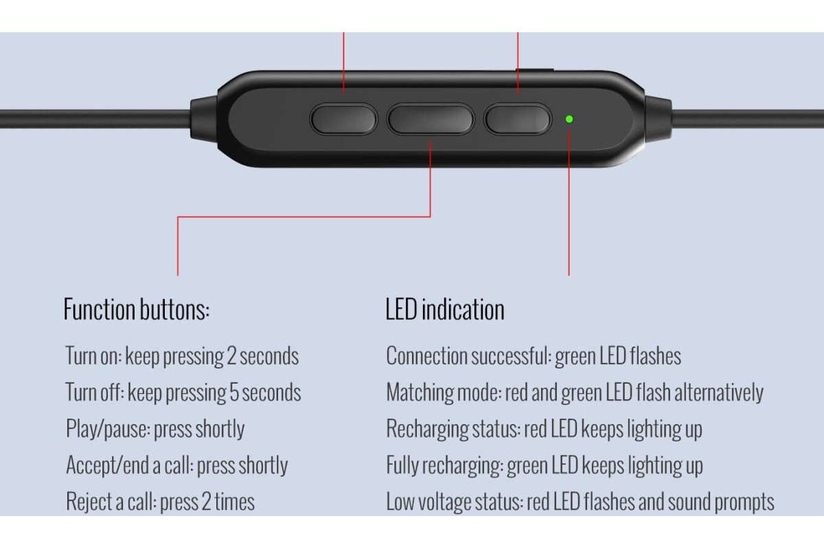 Поки навушники не пов'язані з вашим телефоном індикатор блимає червоним кольором, при підключенні загоряється зелений діод.