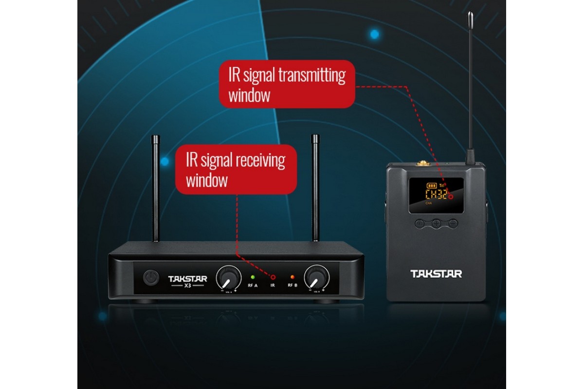 Розроблено з використанням виділеної смуги частот бездротового мікрофона UHF, вільної від перешкод від інших промислових частот