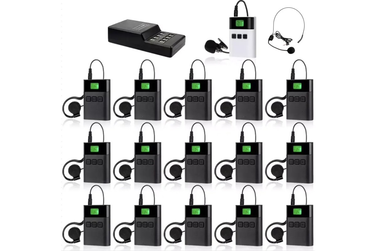 Бездротова система тур-гід DV audio TGD-KIT1T15R ідеально підходить для проведення екскурсій на відкритій місцевості, забезпечуючи вільне пересування учасників заходу, а також аудіовізуального оформлення Ваших презентацій та конференцій. Ця система також використовується для надання послуг синхронного перекладу. На приймачах і передавачі вмонтований дисплей, на якому відображається вся необхідна інформація (номер каналу, рівень заряду акумулятора, рівень сигналу, і функція MUTE), а також є регулятор гучності для налаштування комфортного звуку. Система призначена для роботи у безперервному режимі близько 12 годин (при середньому рівні гучності). Один передавач може працювати з кількома приймачами одночасно. Трансляція звукового сигналу стабільна та надійна. Радіус прийому: до 150 метрів (пряма видимість).