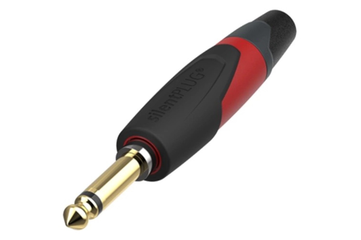Безшумний моно джек 1/4", прорезинений корпус червоного кольору, позолочені контакти. SilentPLUG автоматично вимикає звук (замикає) кабель інструменту (гітари), щоб беззвучно підключати інструмент (гітару) під навантаженням.