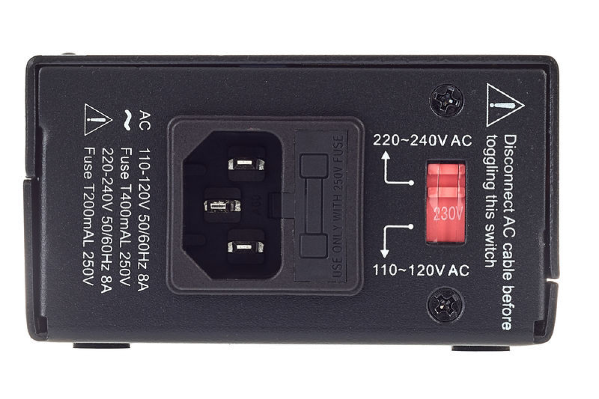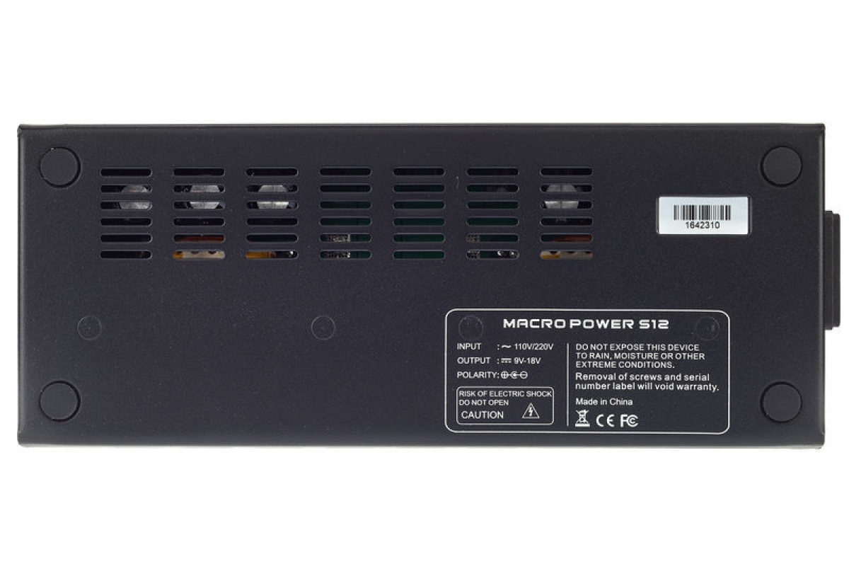 Оснащений двома тороїдальними трансформаторами і 12 повністю незалежними виходами, MACRO S12 здатний видавати до 3400мА постійного струму, без перешкод і шумів.