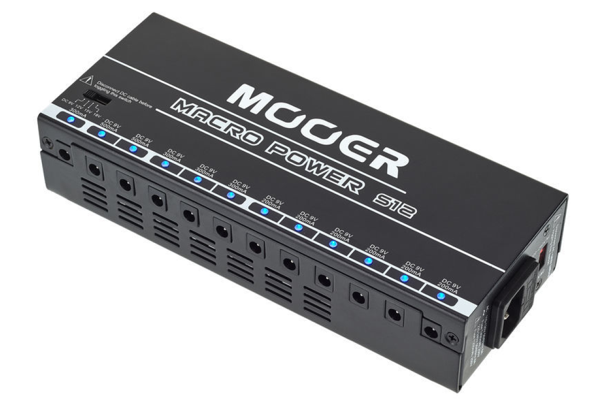 Mooer Macro Power Power S12 - це блок живлення для гітарних педалей, оснащений 12 ізольованими виходами, можливістю регулювання напруги і захистом від перевантаження. Кожен роз'єм оснащений синім LED індикатором для відображення статусу блоку живлення.