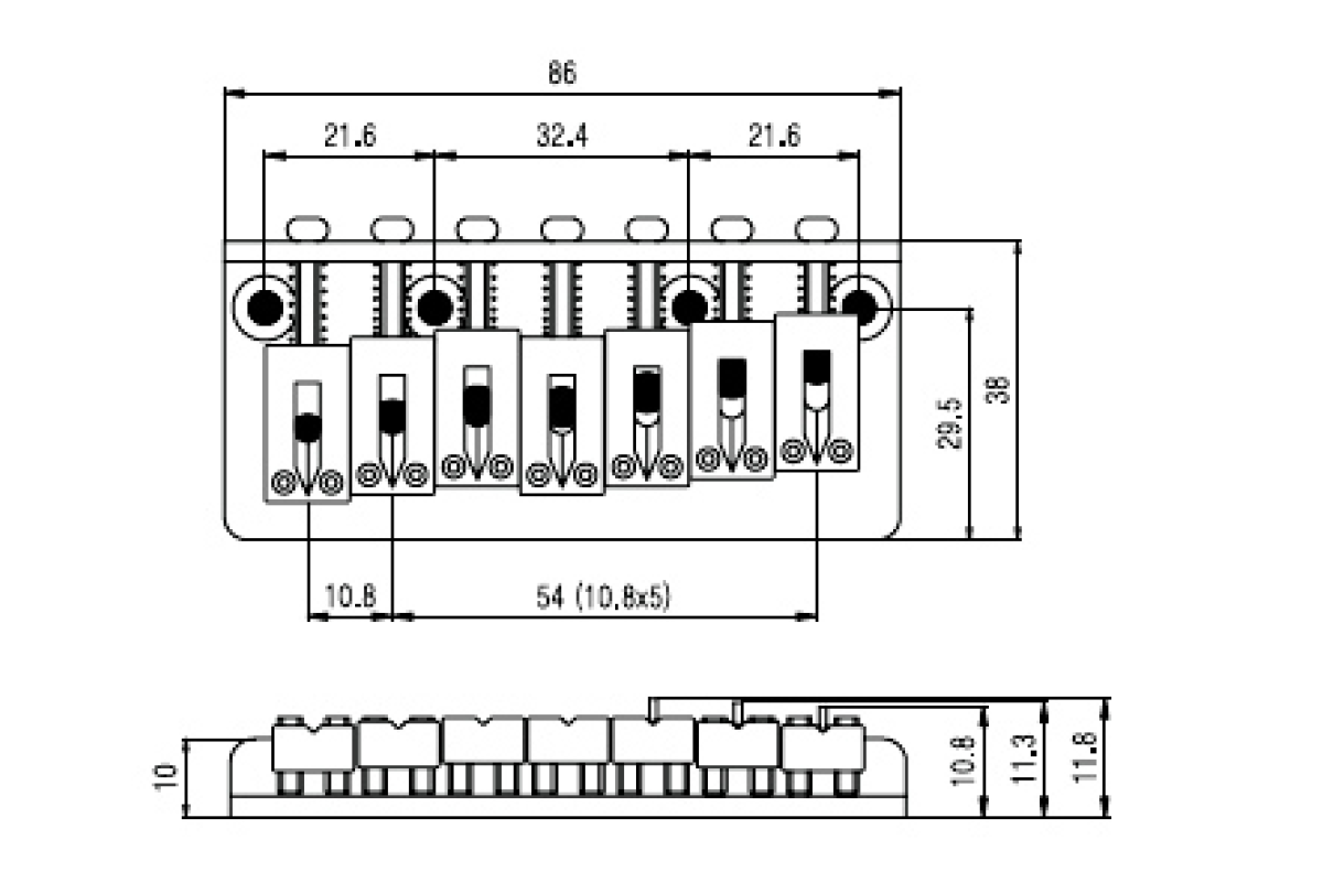 Міжцентрова посадочних гвинтів - 21.6 мм + 32.4 мм