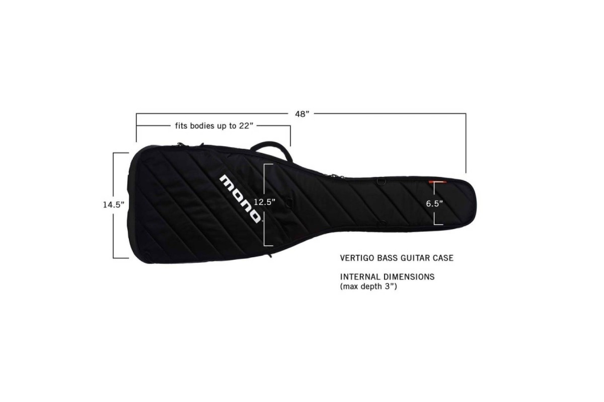 Інтегральні панелі ABS забезпечують захист вагомого чохла при частці ваги. (Чохли MONO важать приблизно на 75% менше, ніж їх аналоги з твердих матеріалів.) Зміцнена зовнішня оболонка чохла Vertigo™ поглинає та відхиляє сильні удари від уразливих зон басу.