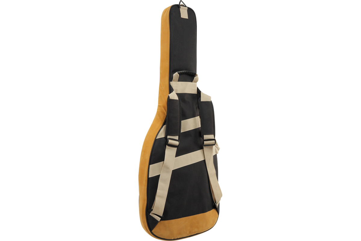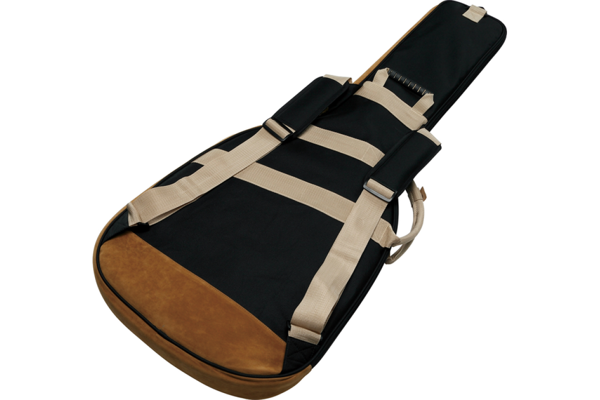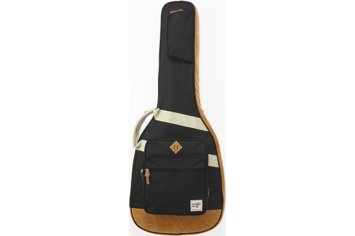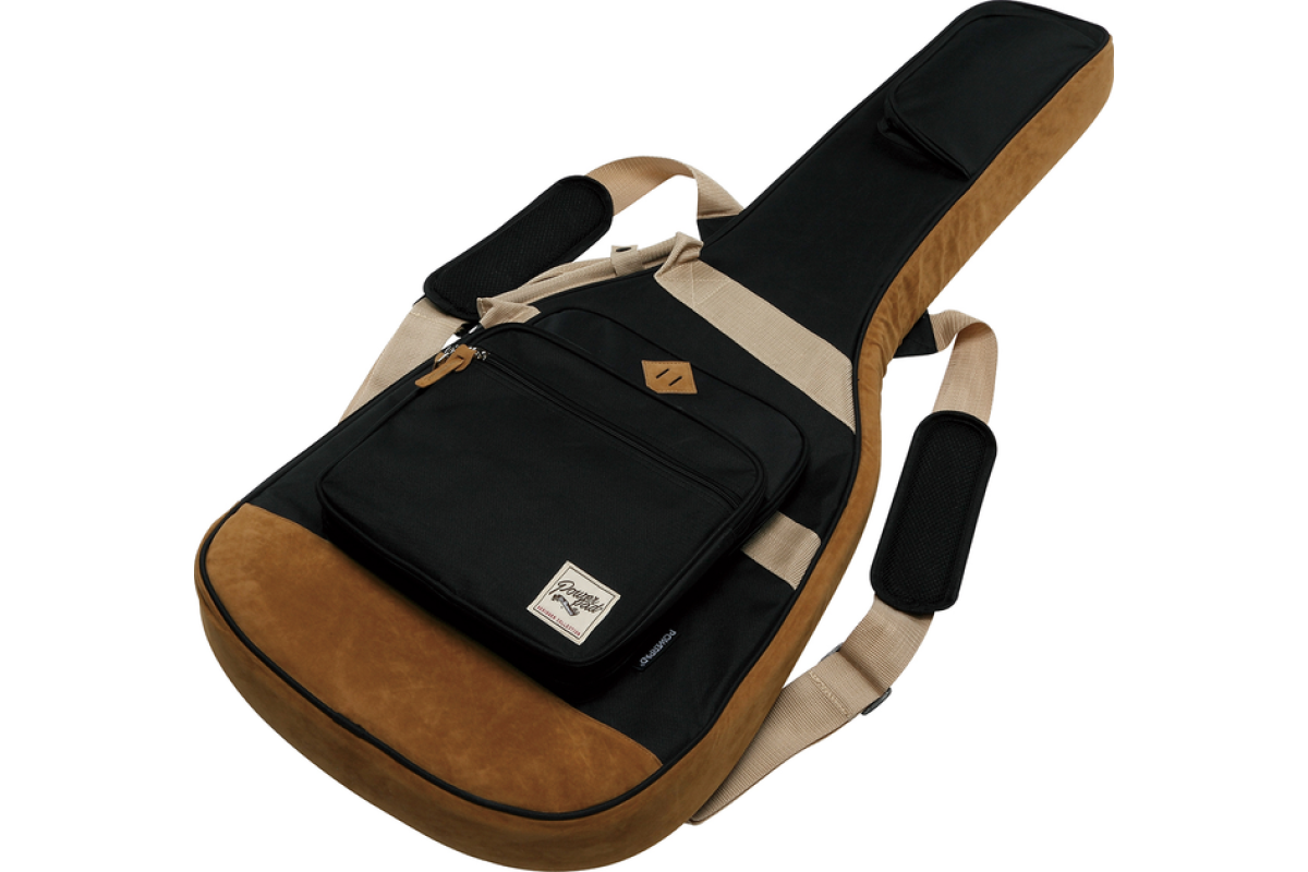 IBANEZ IGB541 BK - дизайнерський чохол утеплений для електрогітари серії PowerPad, розмір - 4/4, товщина: 25 мм - основна, 15 мм - бічна, колір - чорний зі вставками з коричневої замші, заплічні ремені з регулюванням довжини, ручка для перенесення, 3 кишені на блискавках.