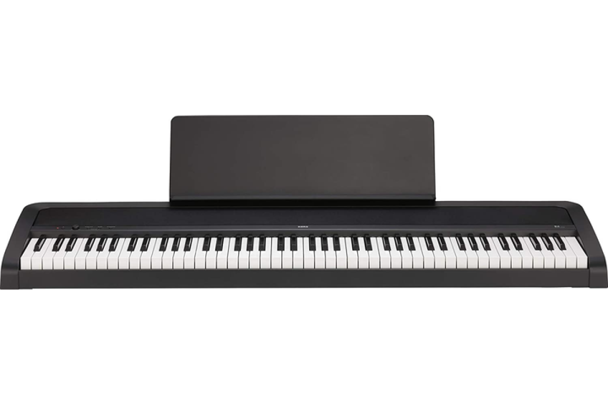 Основні особливості цифрового піаніно KORG B2-BK: Максимальна поліфонія: 120 голосів; Клавіатура Natural Weighted Hammer Action на 88 клавіш; 8 вбудованих тембрів (акустичне фортепіано - 3, електропіано - 2, орган - 2, клавесин); Режим « Partner » дозволяє грати “ в чотири руки ”; Вбудований метроном і ефекти реверберації і хоруса; 8 демонстраційних композицій (по одній для кожного тембру); Вбудована акустична система з технологій MFB (Motional Feedback) включає два широкосмугових динаміка і пасивний; Підсилювач з вихідною потужністю 2 х 9 Вт; Вихід на навушники, поєднаний з лінійним виходом; Роз'єм USB-MIDI; Гніздо для підключення комплектної педалі, яка цілком виконана з металу. Також є можливість підключення опціонального 3-педального блоку PU-2.
