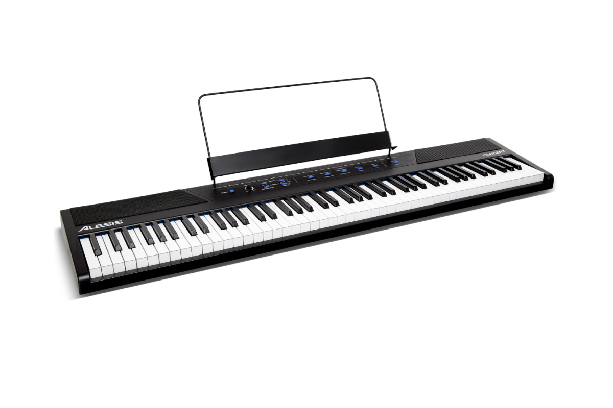 Alesis Concert має неймовірно корисну функцію під назвою Lesson Mode (Режим уроку). Ця функція ділить 88 клавіш на дві зони з однаковою висотою звуку та тембром. Це дозволяє як учневі, так і викладачеві легко спостерігати один за одним та грати разом, без необхідності робити це по черзі. Concert також оснащений виходом для навушників (6,35 мм), який вимикає внутрішні динаміки для зручних тихих занять.