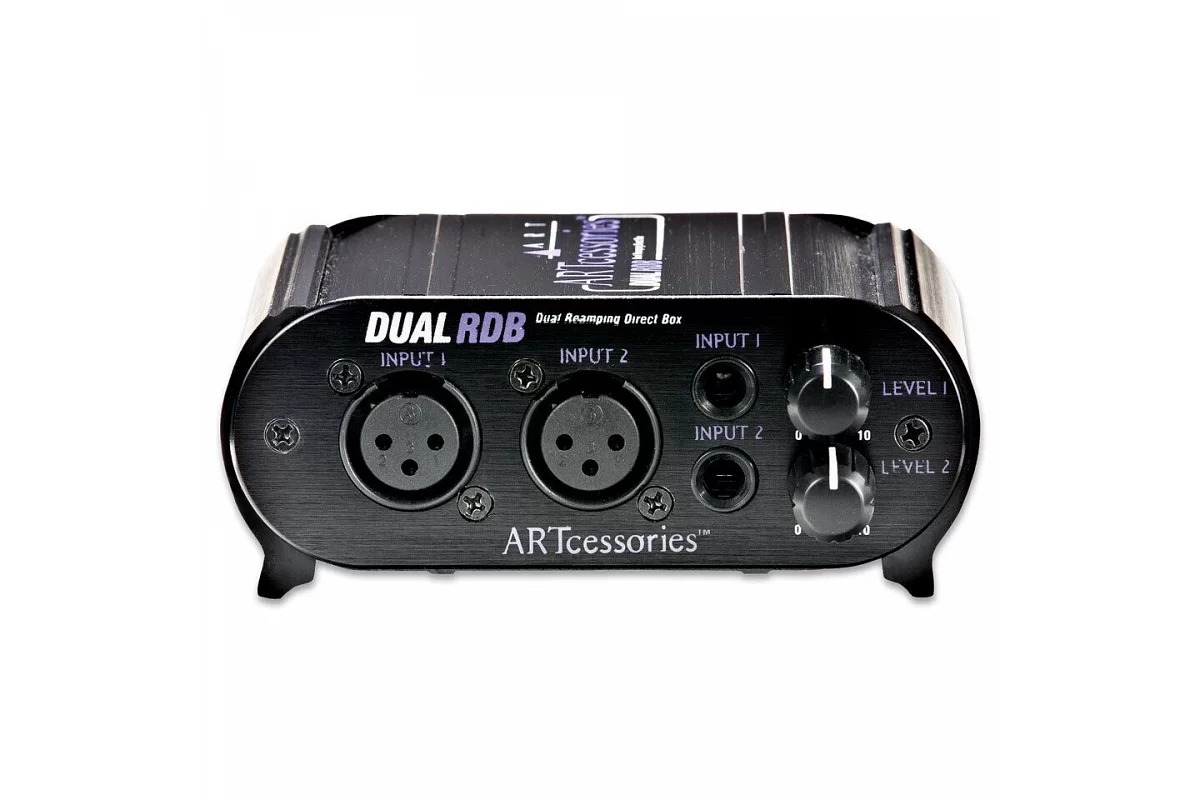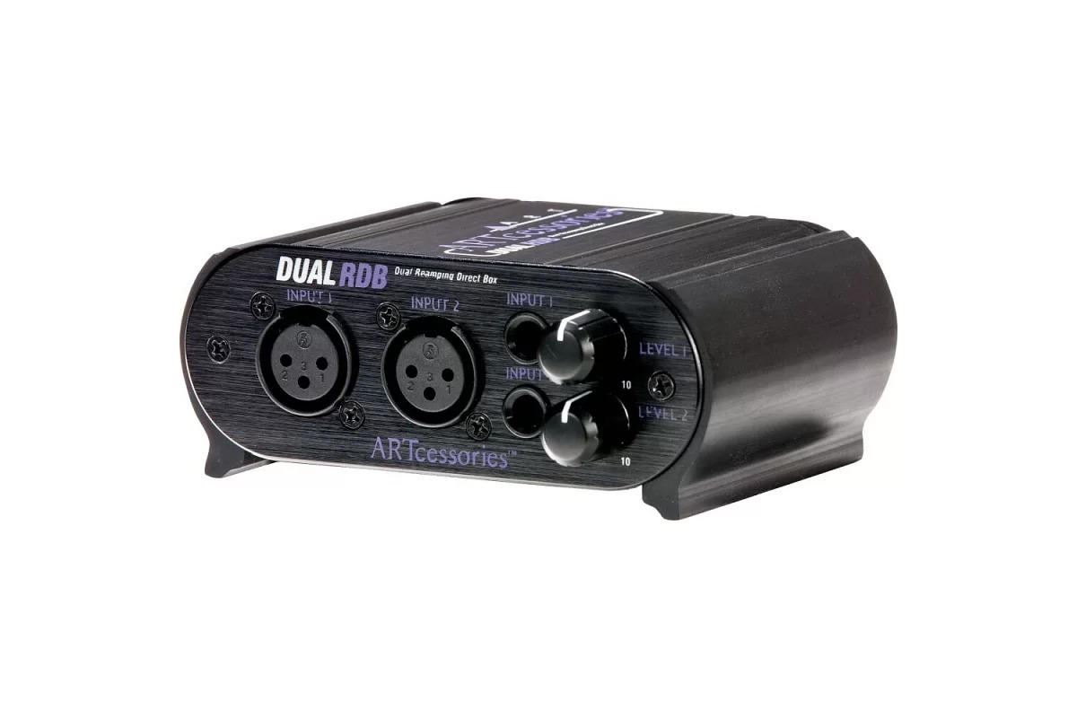 DUAL RDB ідеальний інтерфейс для будь-якого застосування, де стерео або подвійного лінійного рівня сигнали від записуючих інтерфейсів, комп'ютерів, мікшерів, iPod і т.д. потрібно підключити до XLR мікрофонним або 1/4 " інструментальним входів. Ді-бокс має два високоякісних ізоляційних трансформатора, які запобігають заземлення, коли підключені різні системи разом. Частотний діапазон 20 Гц – 20 кГц гарантує функціонування з будь-якими високоякісними аудіо джерелами.