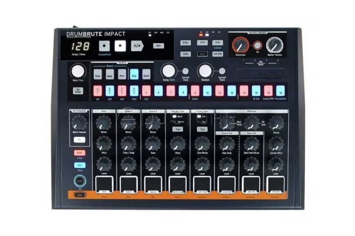 Нова надихаюча і пробивна драм-машинка від Arturia. DrumBrute Impact об'єднує в собі захоплюючу продуктивність дебютної драм-машини Arturia і абсолютно новий набір звуків. Кожен з 10 ударних і перкусійних елементів має свій неповторний характер, всі вони чудово доповнюють один одного і можуть бути модифіковані за допомогою спеціально розробленого саунд-шейпер регулятора « Color » буквально на льоту. Насолоджуйтеся забійним звучанням із загальним дисторшн-контролем, створюйте нескінченні полірітміческіе секвенції, відкрийте для себе аналогові ударні в новому форматі.
