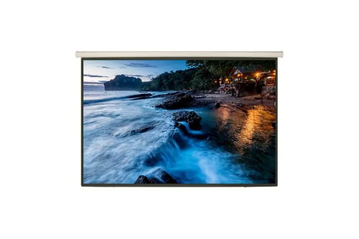 Проекційний екран переносний, легко розгортається з рулону, можна кріпити на стіну, стелю і т.д.