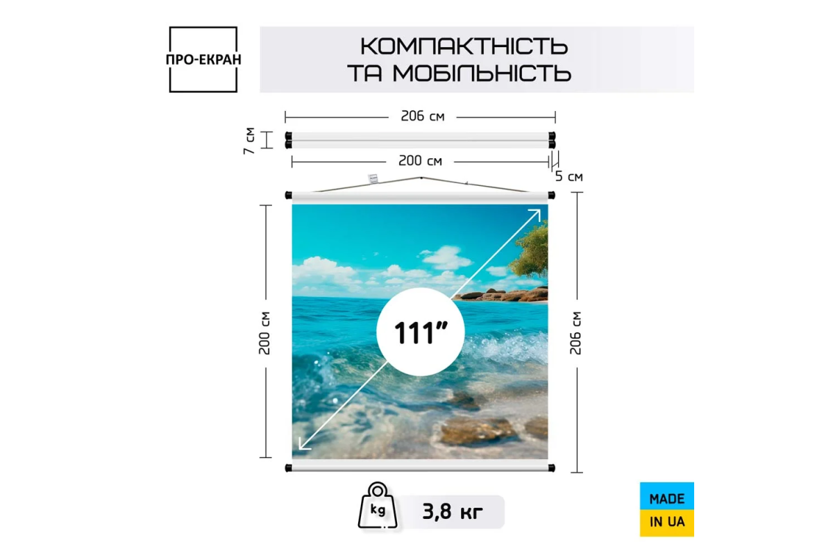 Екран для проектора з діагоналлю 111 дюймів, 200х200 см (1:1)