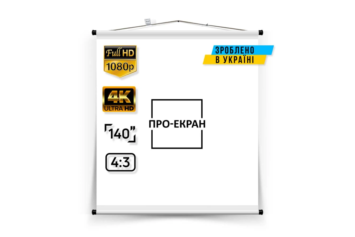 Для виготовлення екранів ПРО-ЕКРАН використовується високоякісне біле полотно ПВХ з коефіцієнтом посилення 1 і натуральною кольоропередачею. Матова поверхня екрану гарантує відсутність відблисків, забезпечує високу яскравість та великі кути огляду до 170 °.