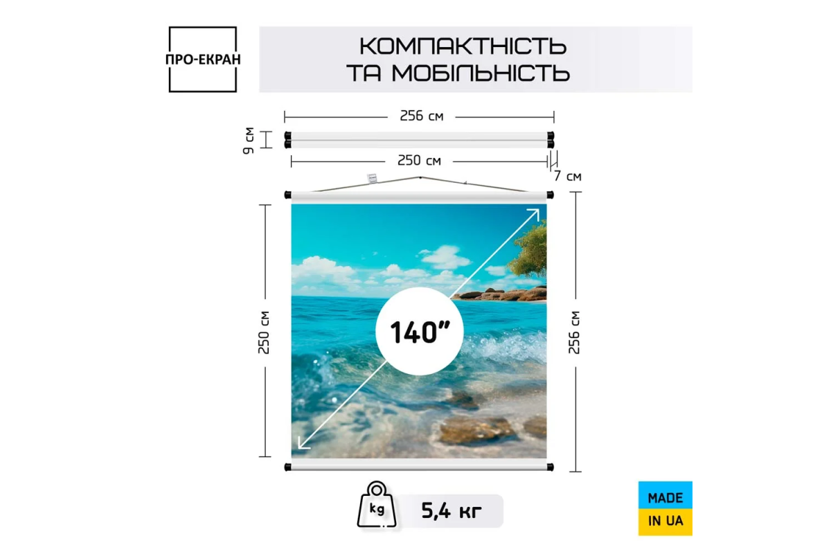Екран для проектора з діагоналлю 140 дюймів, 250х250 см (1:1)