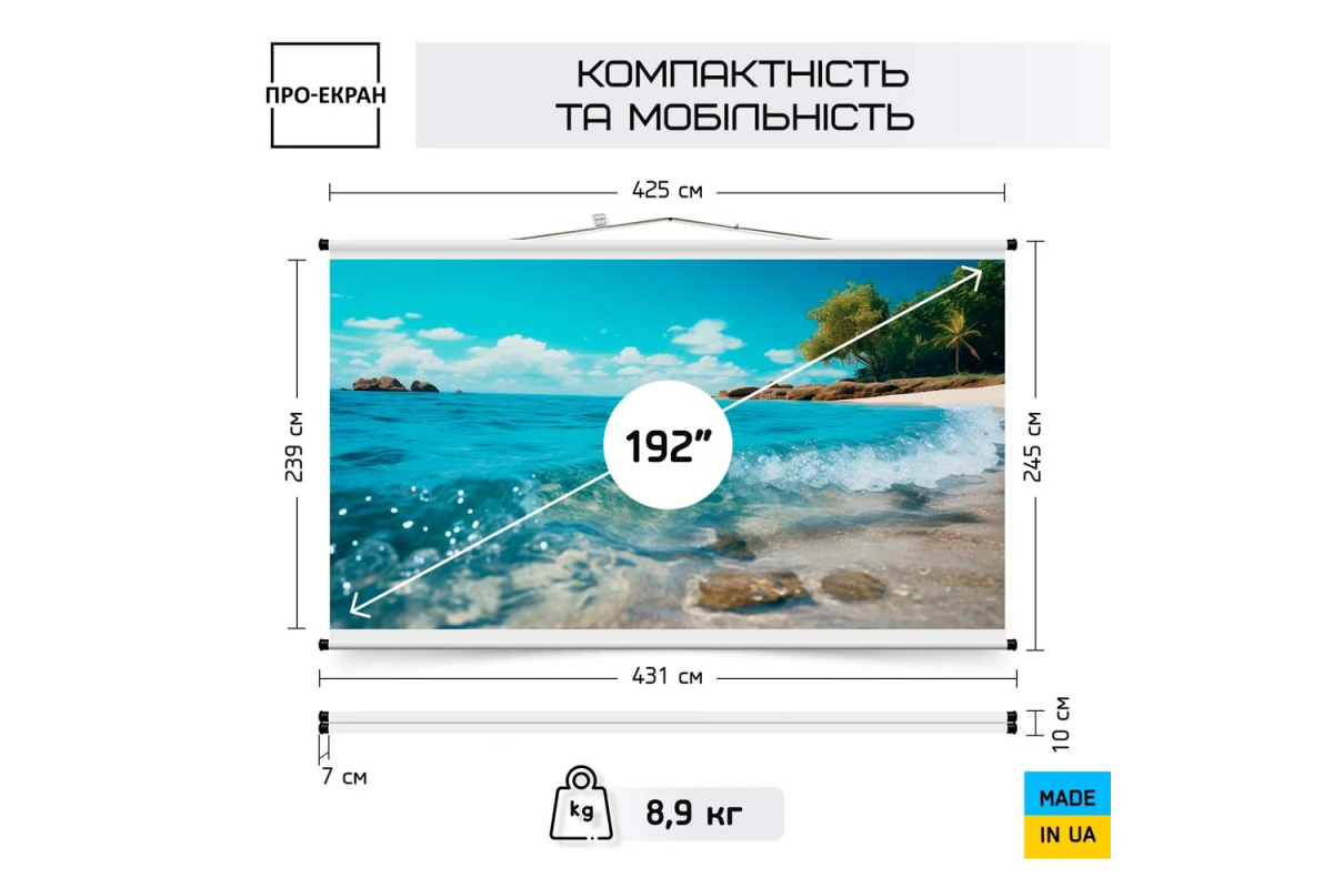 Екран для проектора з діагоналлю 192 дюйми, 425х239 см (16:9)