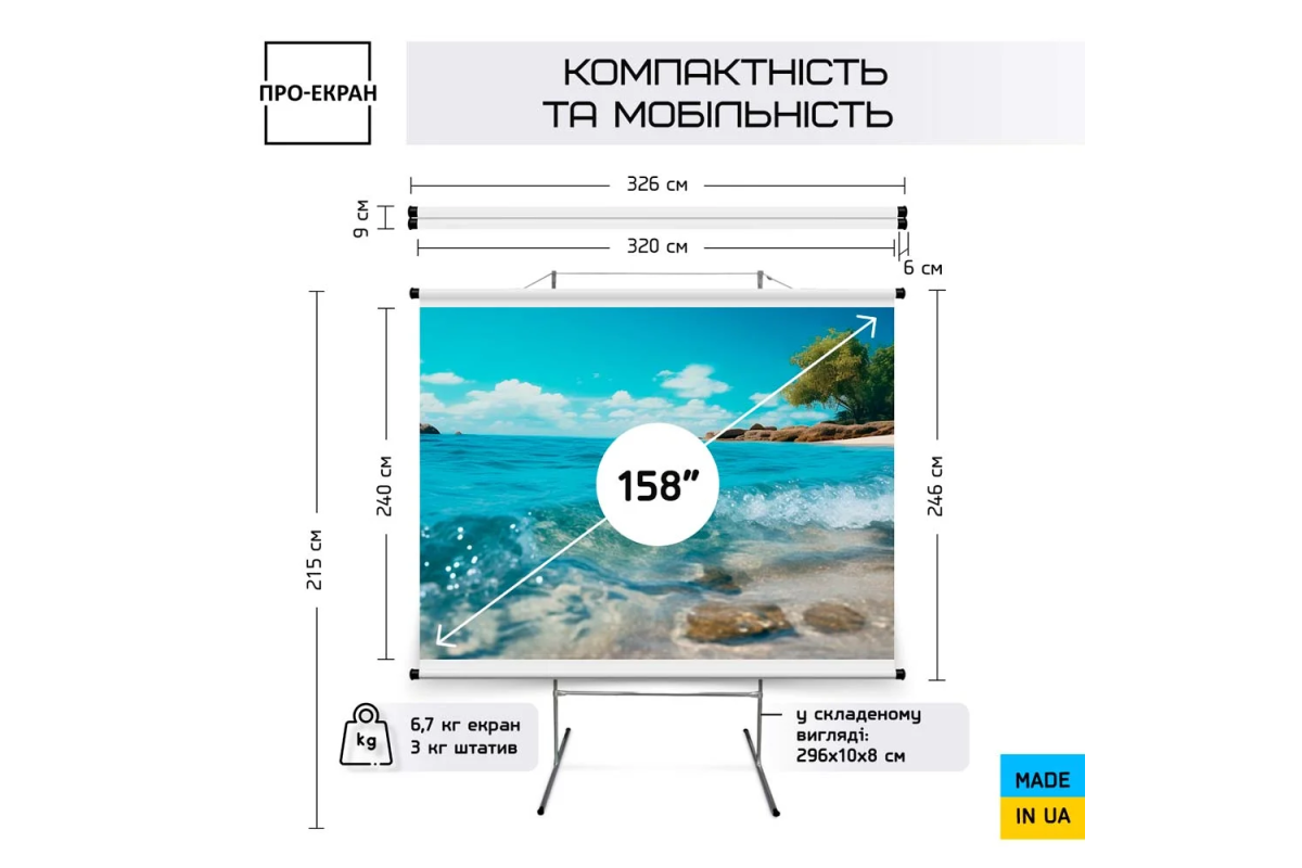 Екран для проектора на штативі з діагоналлю 158 дюймів, 320х240 см (4:3)