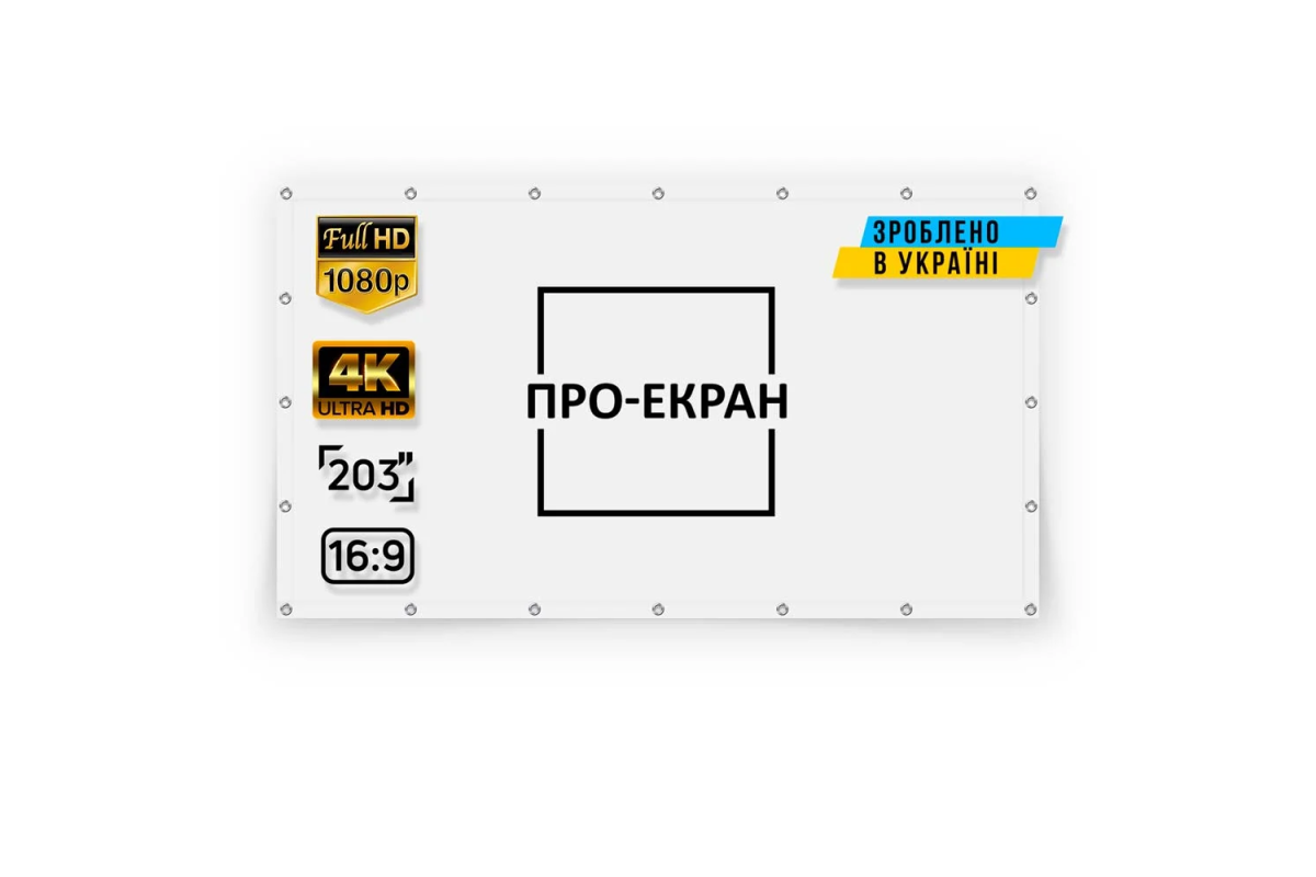 Для виготовлення екранів ПРО-ЕКРАН використовується високоякісне біле ПВХ полотно Matte White з коефіцієнтом посилення 1 та натуральною передачею кольорів. Матова поверхня екрану гарантує відсутність відблисків, забезпечує високу яскравість та великі кути огляду до 170°.