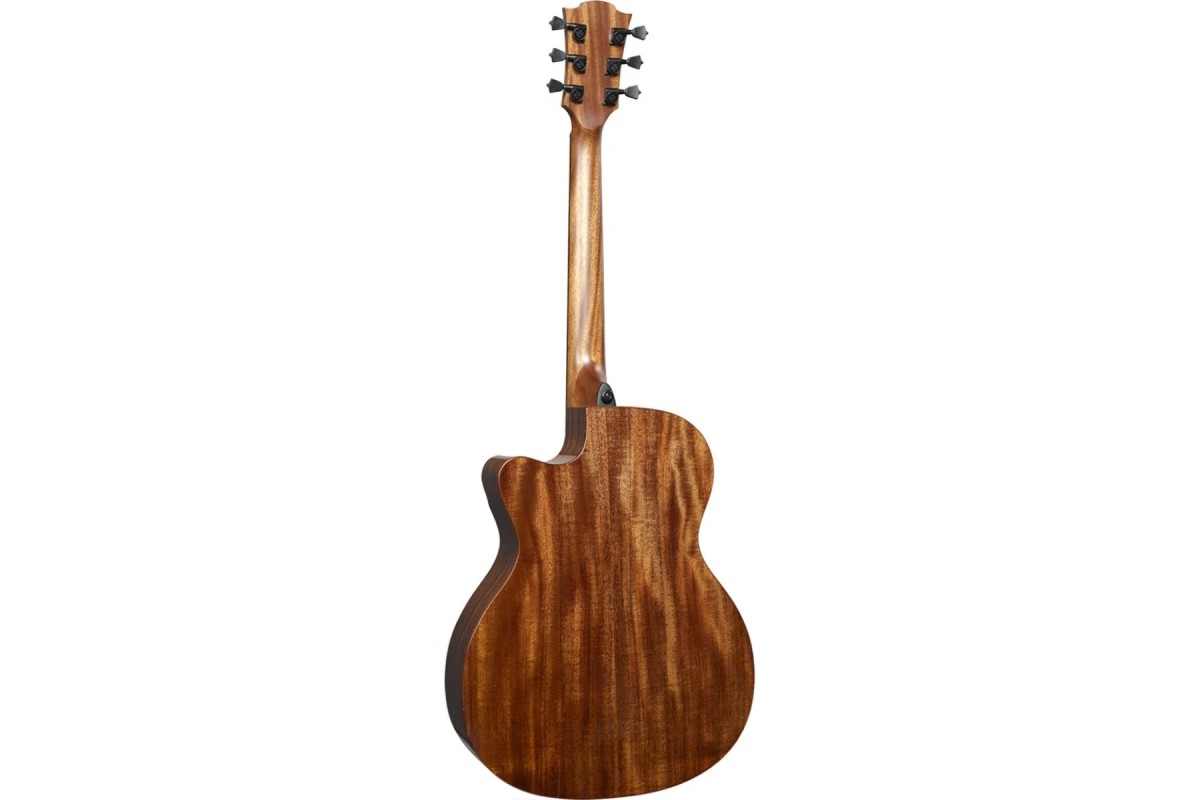 Завдяки аудиторіумній формі деки, гітара має збалансоване звучання, а виріз на корпусі забезпечує зручність гри на верхніх ладах. Вона ідеально підходить для фінгерстайлу та сольних виступів. Верхня дека виготовлена з цілісного червоного кедра, а обичайки та нижня дека – з червоного дерева, що посилює резонанс та тривалість звуку, забезпечуючи багате та повне звучання. Гриф із червоного дерева з анкером двосторонньої дії гарантує стабільний тон, а накладка на гриф із коричневої композитної деревини BrankoWood (штучний аналог палісандра) забезпечує комфортну гру та надає гітарі елегантного вигляду.