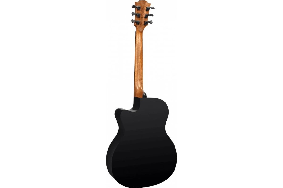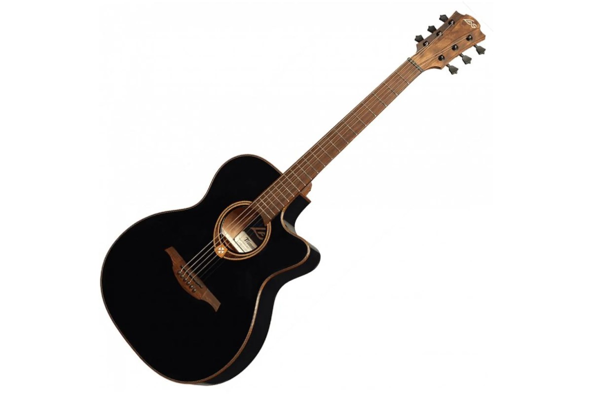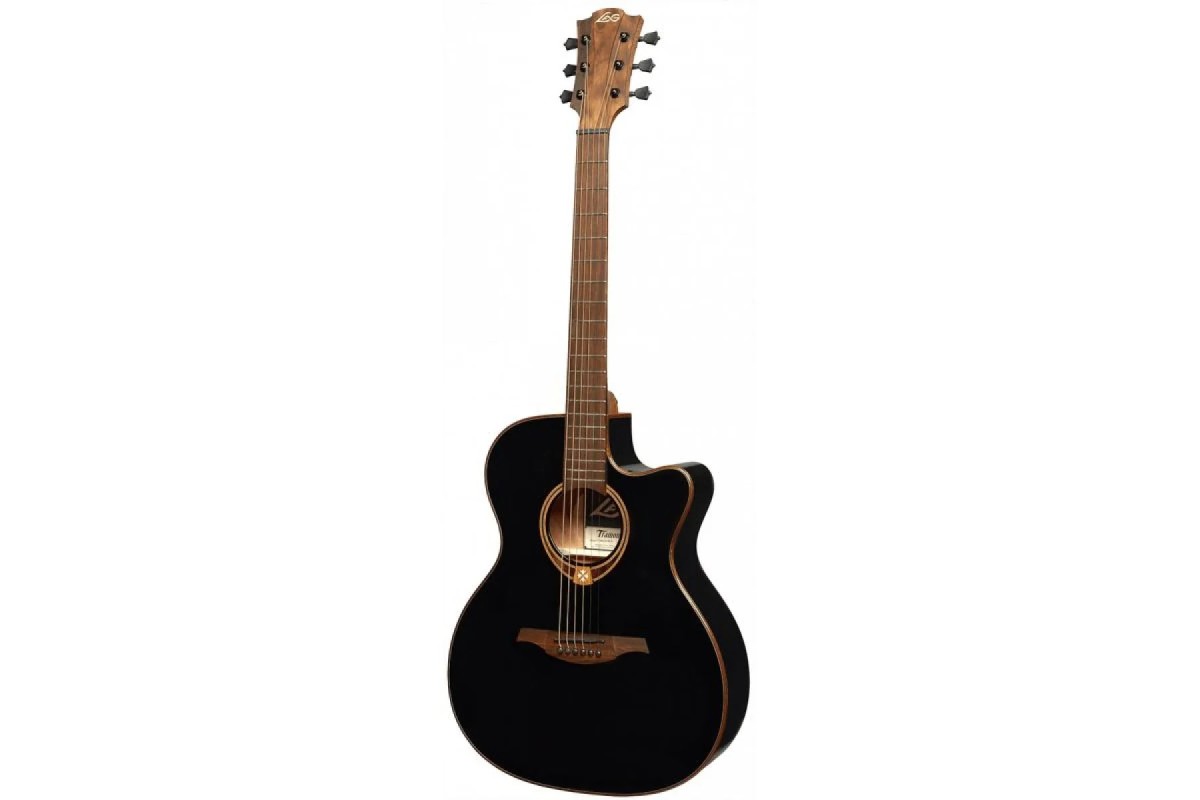 Електроакустична гітара Lag Tramontane T118ACE-BLK має форму аудиторіума з вирізом, що забезпечує зручність гри на високих ладах. Вона вирізняється стильним чорним глянцевим покриттям, привертаючи увагу своїм звучанням та зовнішнім виглядом.