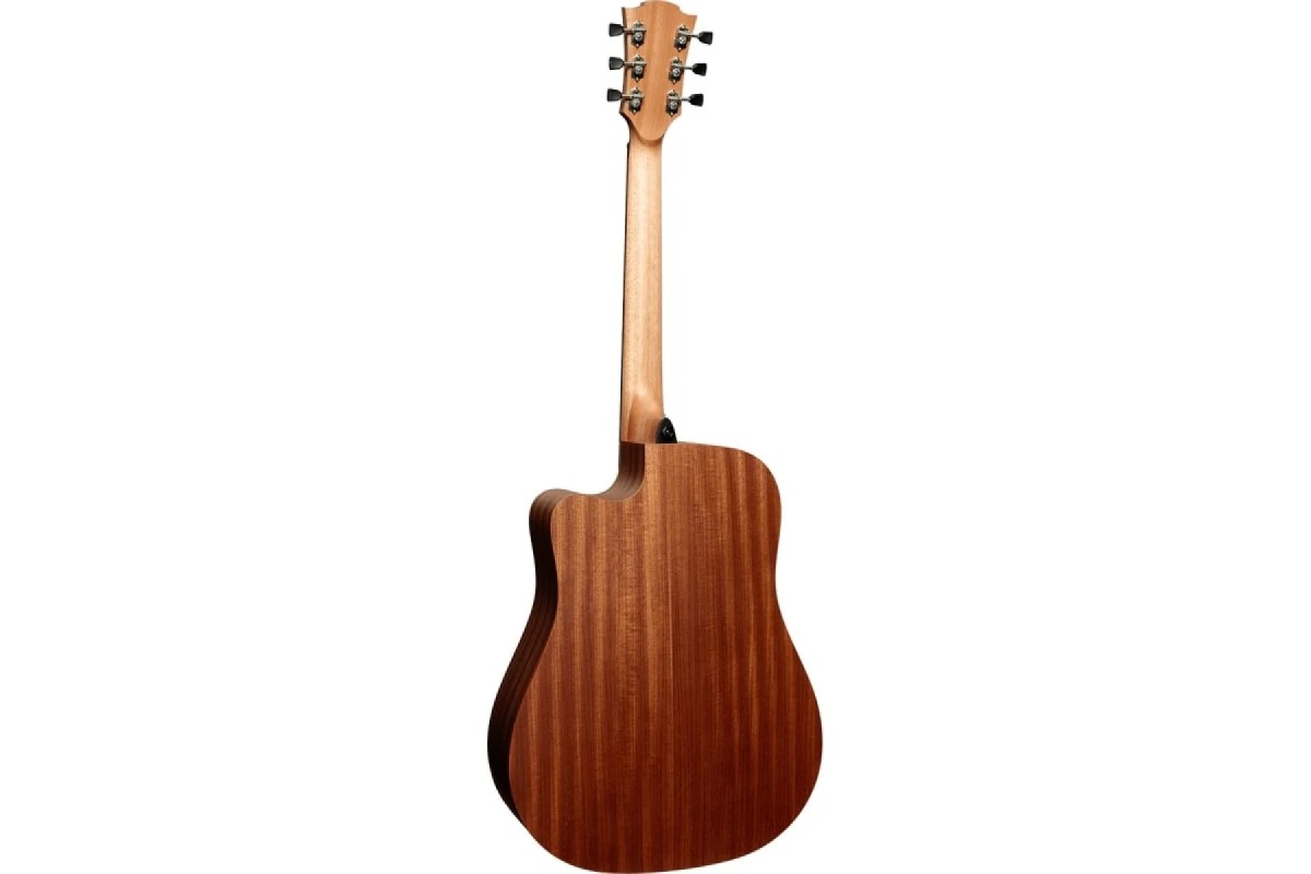 Проте за власний кошт він дуже добре оснащений. Наприклад, у нього є особливе декоративне оформлення звукового отвору, елегантний бридж з правильно компенсованим сідлом, і це ще до згадки більш ніж пристойних сатинованих чорних кілків, верхнього графітового порожка і добре оснащеного підсилювача з тюнером, трисмуговим еквалайзером і фазовим перемикачем для усунення.