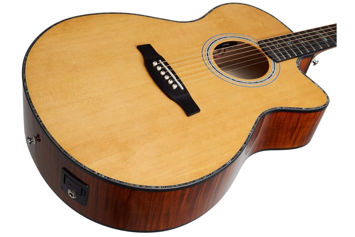 PRS SE A50E поєднує в собі обичайку та нижню деку з хвилястого клена з верхньою декою із цільної ялинки для отримання повноцінного, соковитого тону. У поєднанні конструкцією зв'язок верхньої деки типу PRS hybrid "X"/Classicalal, яка дозволяє деці вільно вібрувати, звучання SE A50E має незвичайний для кленових гітар тривимірний характер. Форма корпусу Angelus Cutaway забезпечує комфорт та зручність гри, добре підходить для гри як медіатором, так і пальцями.