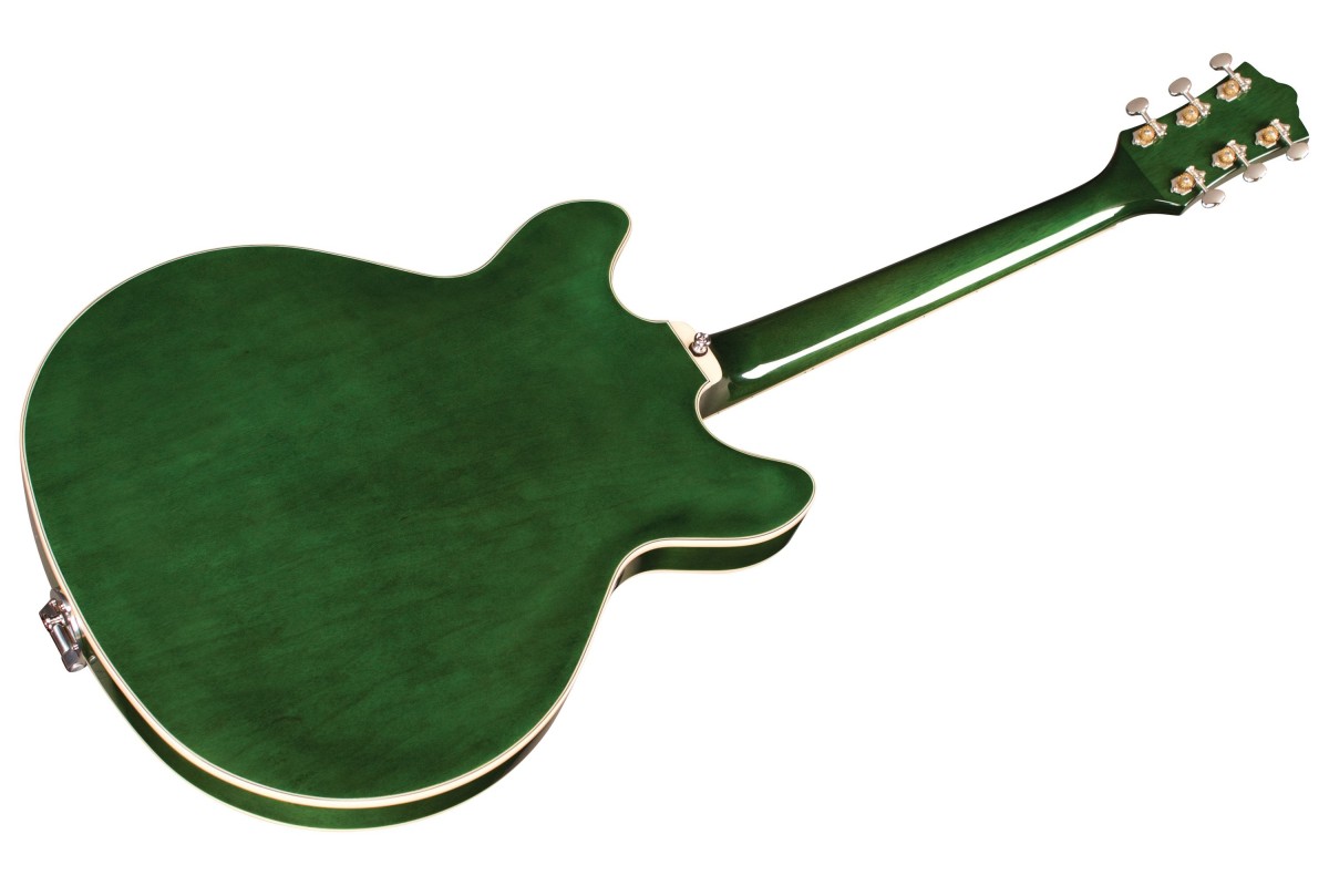 Корпус: Порожнистий корпус із клена з центральним блоком із червоного дерева (Semi-hollow Body)