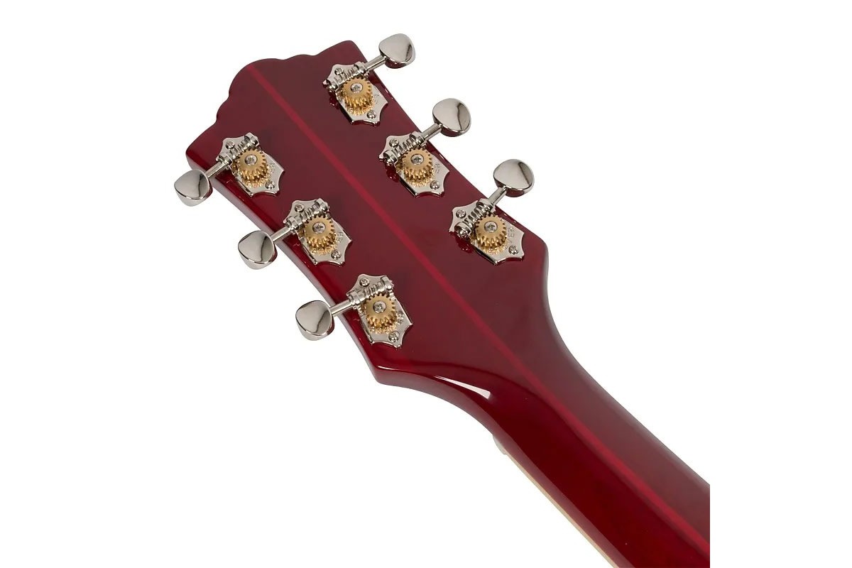 Напівпорожній корпус. Розкішний подвійний виріз, наповнений функціями, які надають цілком виразного голосу вашому індивідуальному стилю гри. Класична Guild Starfire V - це напівакустична красуня з витонченим 16 3/8-дюймовим тонким корпусом і двома звукознімачами Guild LB-1 "Little Bucker", які роблять його видатним вибором з автентичним звучанням Guild, що ідеально підходить для року, блюзу. Корпус Starfire V, повністю виконаний з червоного дерева, має вигнуту верхню та задню частину, подвійні отвори для отворів, елегантне окантування корпусу кольору слонової кістки, чорно-біле оздоблення та конструкцію з центральним блоком. гриф з червоного дерева з м'яким U-подібним профілем у вінтажному стилі, накладка з палісандра з 22 ладами радіусом 9 1/2 дюйма та вставками з перламутрового блоку, трипозиційний перемикач звукознімачів, Індивідуальні регулятори гучності та тону для кожного звуку -O-Matic з основою з палісандра, струнотримач вібрато Guild, колки Grover Sta-Tite, нікельована фурнітура та чудове оздоблення Cherry Red. Включає жорсткий чохол з плюшевою підкладкою.