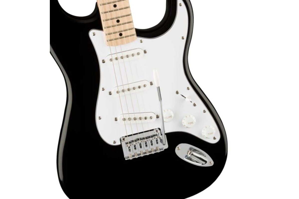 Основні особливості електрогітари SQUIER by FENDER AFFINITY SERIES STRATOCASTER MN BLACK : Дека з тополі - легка зі збалансованим звучанням; Бовчений гриф гарантує швидкий відгук; С-подібний тонкий профіль забезпечує комфортну гру; Сатинове покриття грифа - нелипке та гладке, щоб ви могли грати швидко; Лади Medium Jumbo надають контрольоване відчуття для широких вібрато та ідеальних бендів; Глянцеве покриття голови грифа разом із оновленим логотипом, що нагадує класичні інструменти Fender, дає свіжий зовнішній вигляд; Конфігурація звукознімачів SSS адаптує цей інструмент до різних музичних жанрів, а 5-позиційний перемикач дозволяє отримати унікальні тональні комбінації; Бридж з тремоло 2-Point Synchronized Tremolo забезпечує плавну роботу важеля тремоло та покращену інтонацію; Закриті литі колки сприяють точному настроюванню, а їхній практичний дизайн полегшує заміну струн.