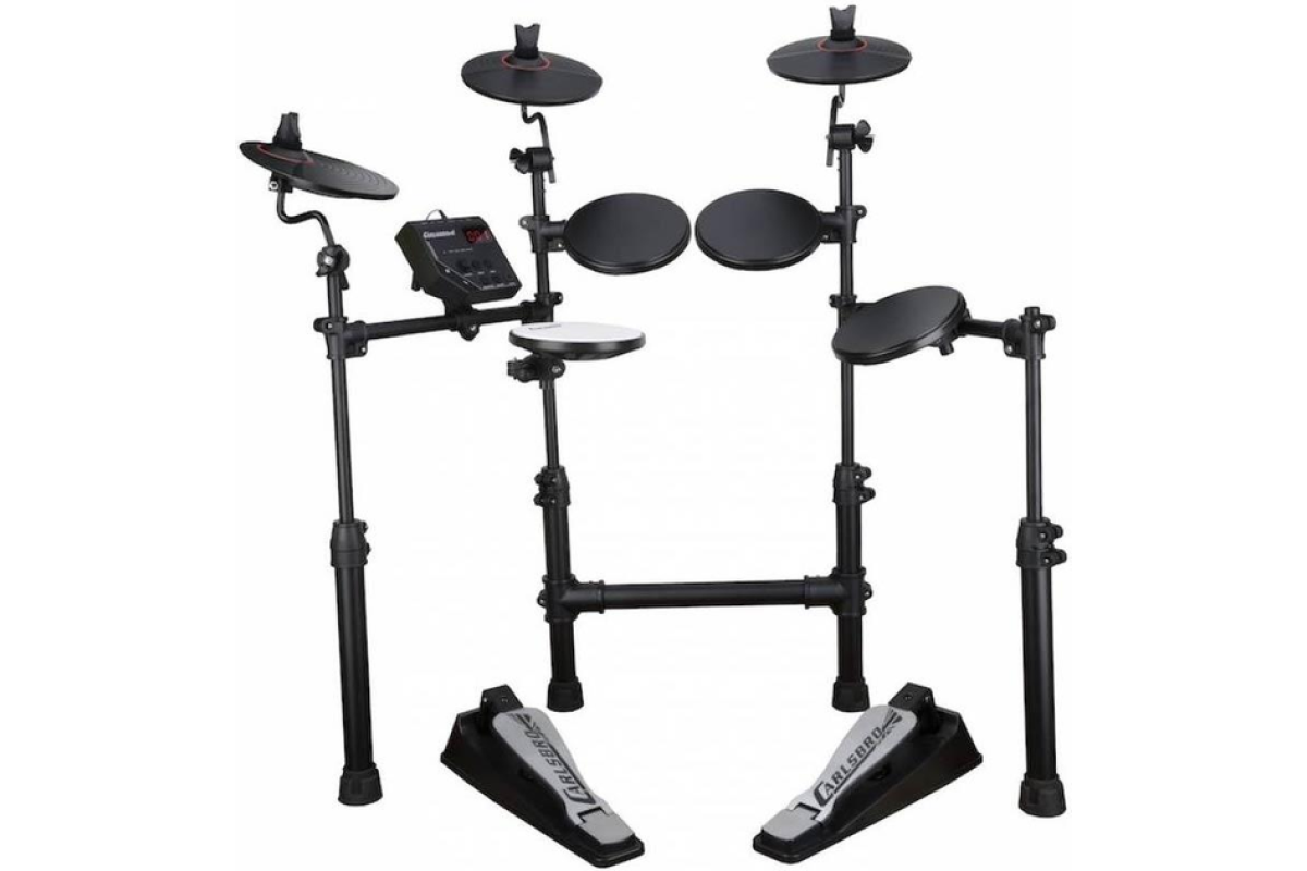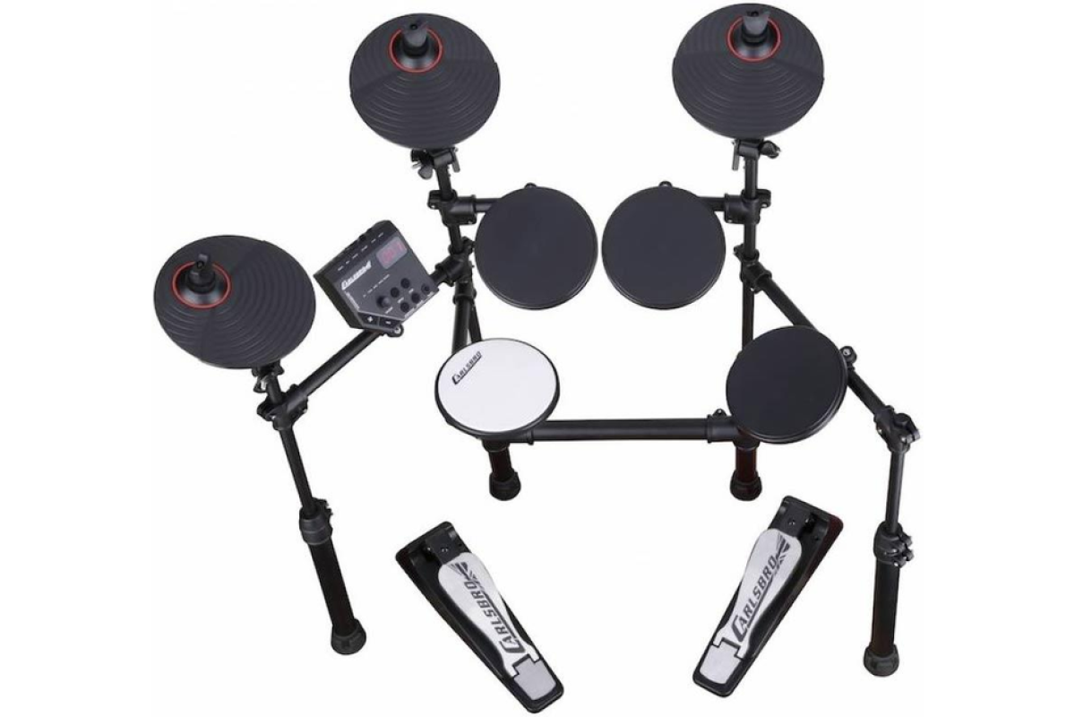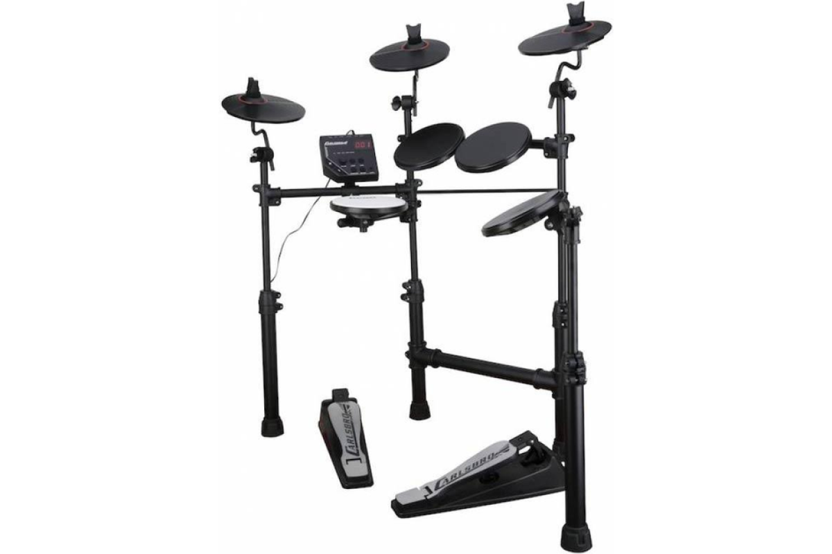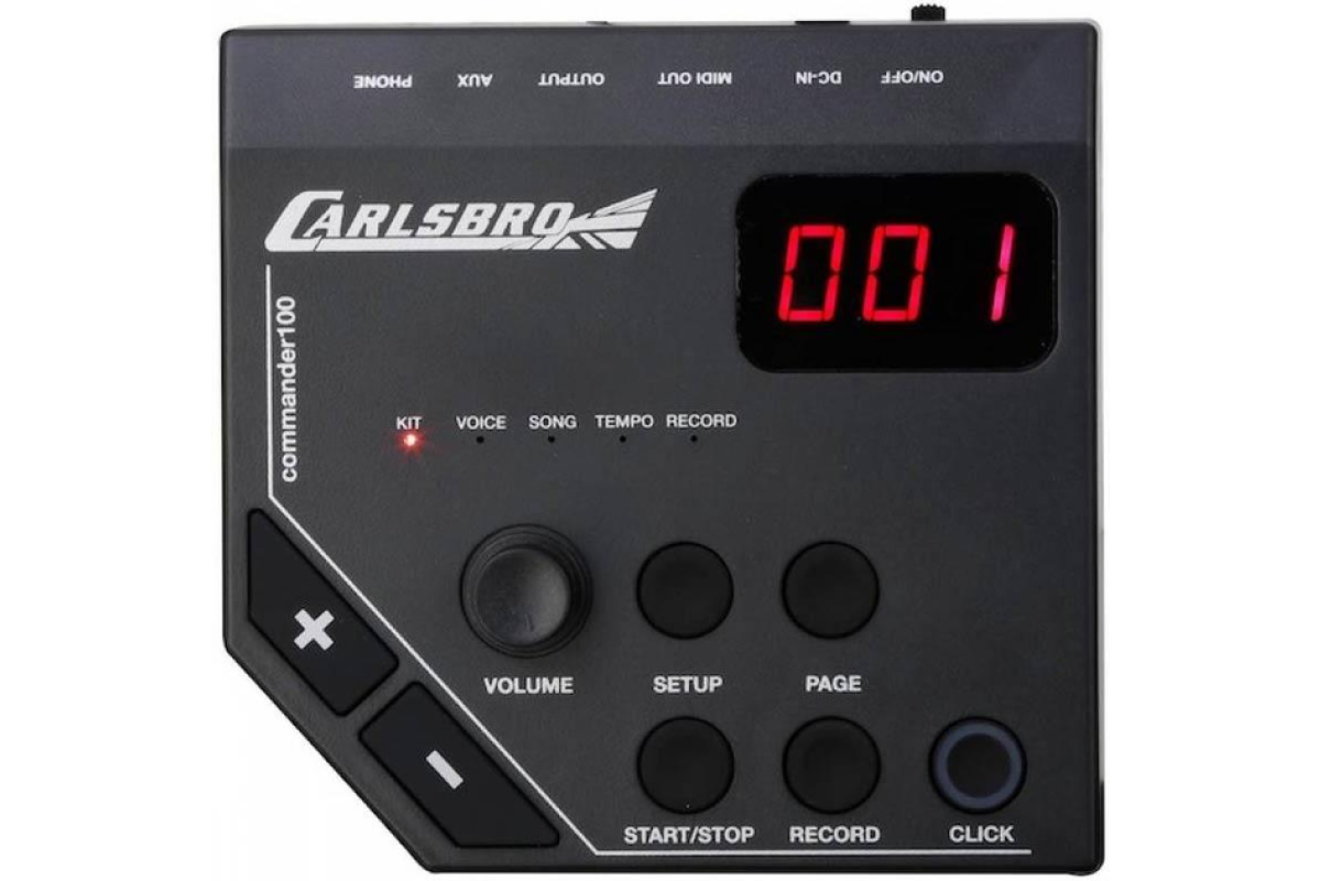 Електронна ударна установка CARLSBRO CSD100 складається з звукового модуля Commander 100, 4 барабанних педів, 3 тарілок, включаючи двозонний Ride і телескопічну раму з регуляцією висоти. Commander 100 має 10 барабанних пресетів, 108 звуків, 10 демо-пісень, aux-вхід і метроном. Ідеально підходить для живих виступів або записи в студії.