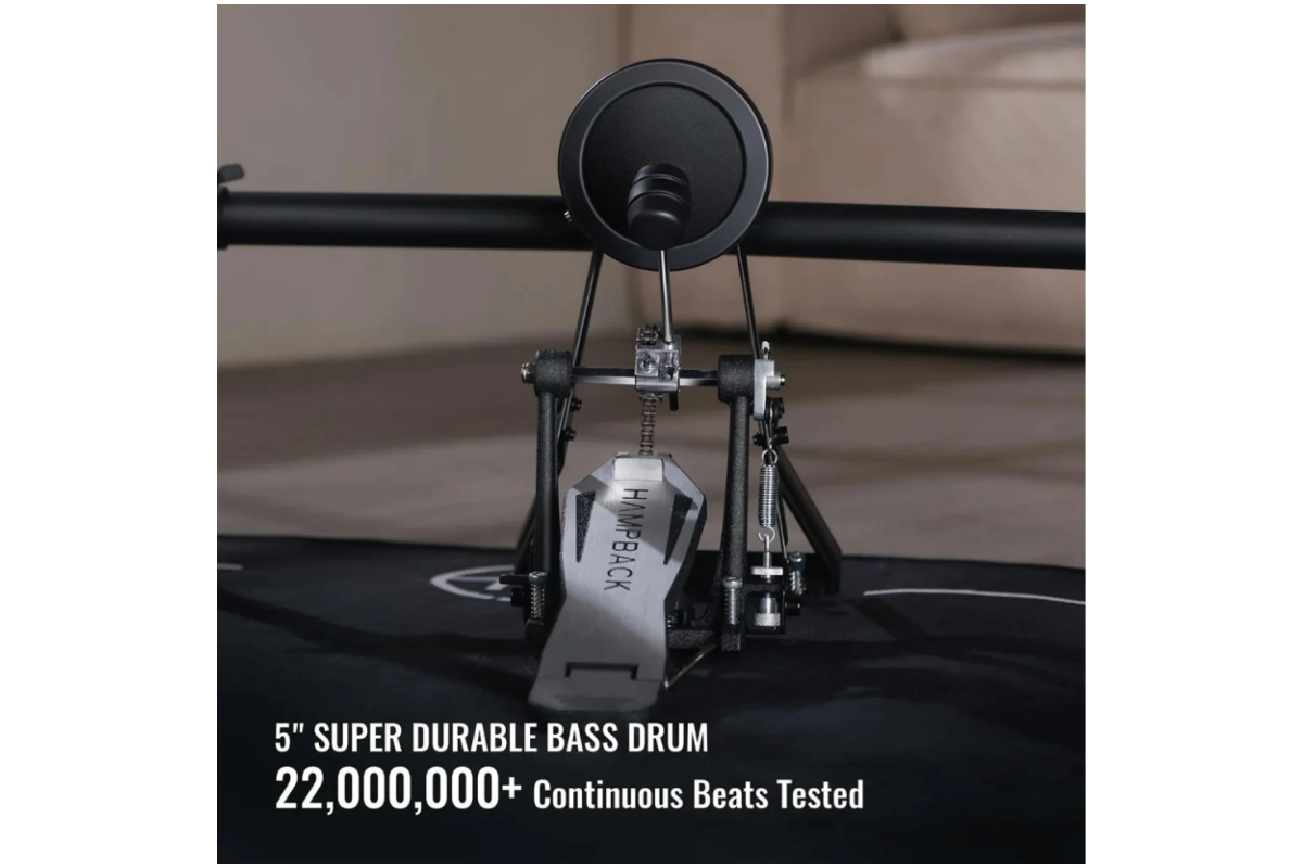 Виготовлений з міцного кевлара, басовий барабан пройшов тест на витривалість з 22000000 ударами без пошкоджень, гарантуючи надійність навіть при інтенсивному використанні. Забезпечує впевнене зворотний зв'язок для справжнього і довговічного досвіду гри.