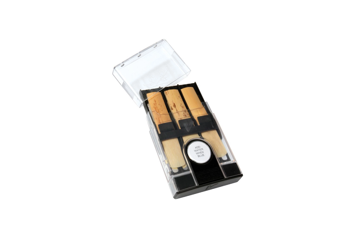 Vandoren HRC10 розроблений для збереження тростин у відмінному стані та запобігання втраті їхніх властивостей. Гідрофутляр забезпечує стабільну вологість завдяки циркуляції повітря та індикатору вологості, що дозволяє завжди мати тростини готовими до гри.
