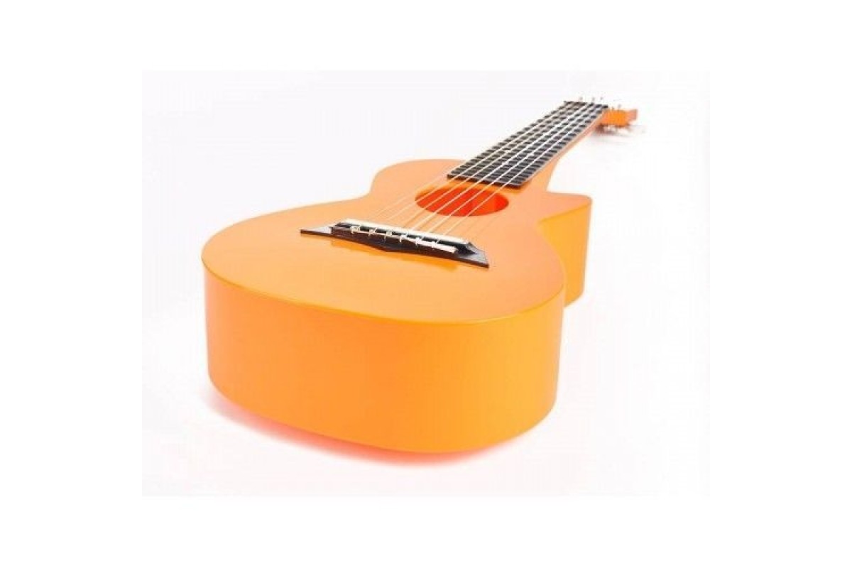 Korala PUG-40-OR - відмінний гібрид гітари і укулеле. Звучить як укулеле, але при цьому має 6 струн і налаштовується аналогічно гітарі, але вище: ADGCEA. PUG-40 виготовлена з акустично точного полікарбонату, завдяки чому вона дуже легка і міцна.