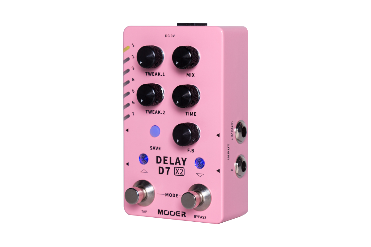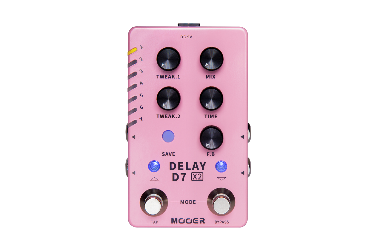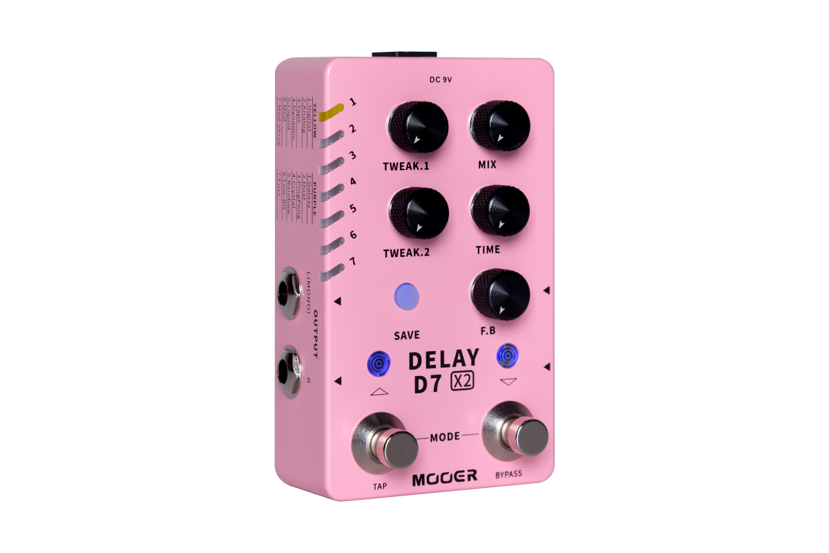 Перша педаль, що отримала абревіатуру X2 – це D7 X2 Dealy. Завдяки 14 високоякісним ефектам затримки, ця педаль більш ніж удвічі перевершує свого побратима, D7 Delay, а також додає стерео входи та виходи. Набір ефектів затримки в D7 X2 Delay має широкий діапазон від класичних аналогових та стрічкових затримок до більш сучасних та експериментальних затримок, таких як Low-Bit, Galaxy і PingPong. Параметри, що регулюються, різняться залежно від кожного ефекту і можуть бути налаштовані за допомогою регуляторів Tweak 1 і Tweak 2. Додаткові параметри можна налаштувати за допомогою регуляторів MIX, TIME і FEEDBACK. Час кожної затримки можна відрегулювати за допомогою ручки TIME або за допомогою педального перемикача TAP TEMPO для швидкого налаштування на льоту.