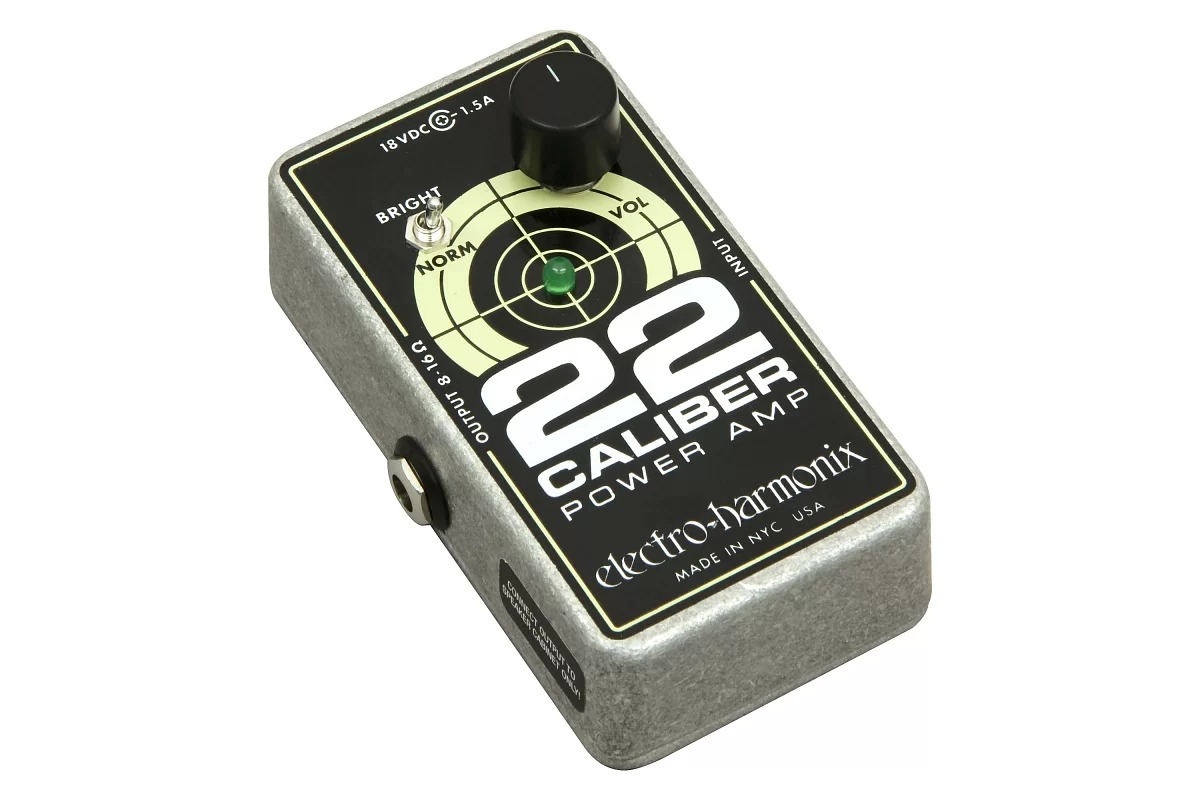 Electro-Harmonix 22 Calibre Power Amp – це універсальний гітарний підсилювач потужністю 22 Вт, що вміщується на долоні. Його чудовий звук та виняткова портативність гарантують йому місце серед ваших основних педалей для виступів, репетицій чи запису. 22 Calibre забезпечує все, що ви очікуєте від підсилювача набагато більшого розміру. Хоча структура входу та посилення була оптимізована для гітари, вона чудово працює і з іншими інструментами. Просто підключіть його до будь-якого 4-, 8- або 16-омного динаміка, і ви отримаєте потужний, приємний музичний звук. Збільште гучність 22 Caliber, і він перейде в овердрайв як вінтажний підсилювач з одним регулятором гучності. Увімкніть яскравий перемикач, щоб додати гостроти та чіткості.