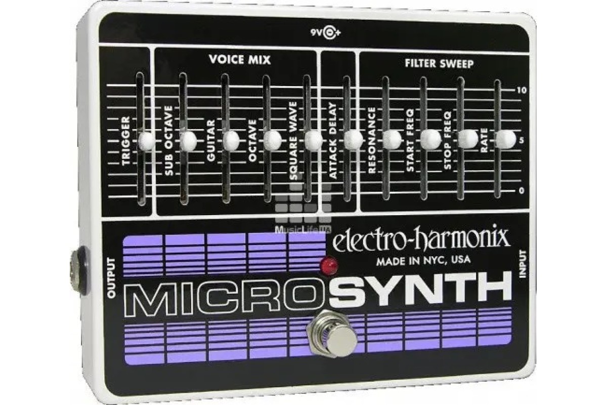 Electro-Harmonix Micro Synth – синтезатор для гітари та басу. Отримайте, розпишіться звуки від вінтажного Moog до сучасних синтів. Цілком аналогова схема, яка давно вже стала частиною фірмового стилю багатьох музикантів у всьому світі. 10 фейдерів дозволять вам нарулити будь-який синтовий саунд, від перкусивних клацань до смичкових та звуку задом-наперед. Найпотужніша річ, справжній маст-хев.