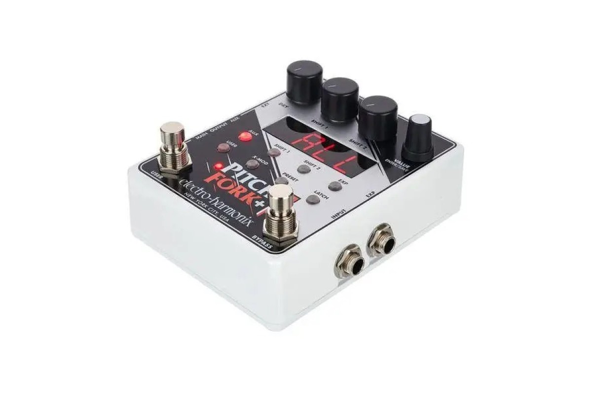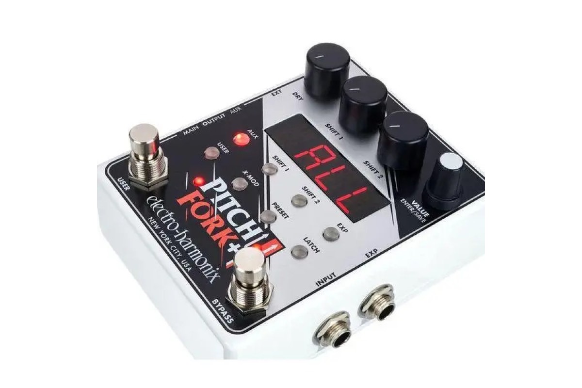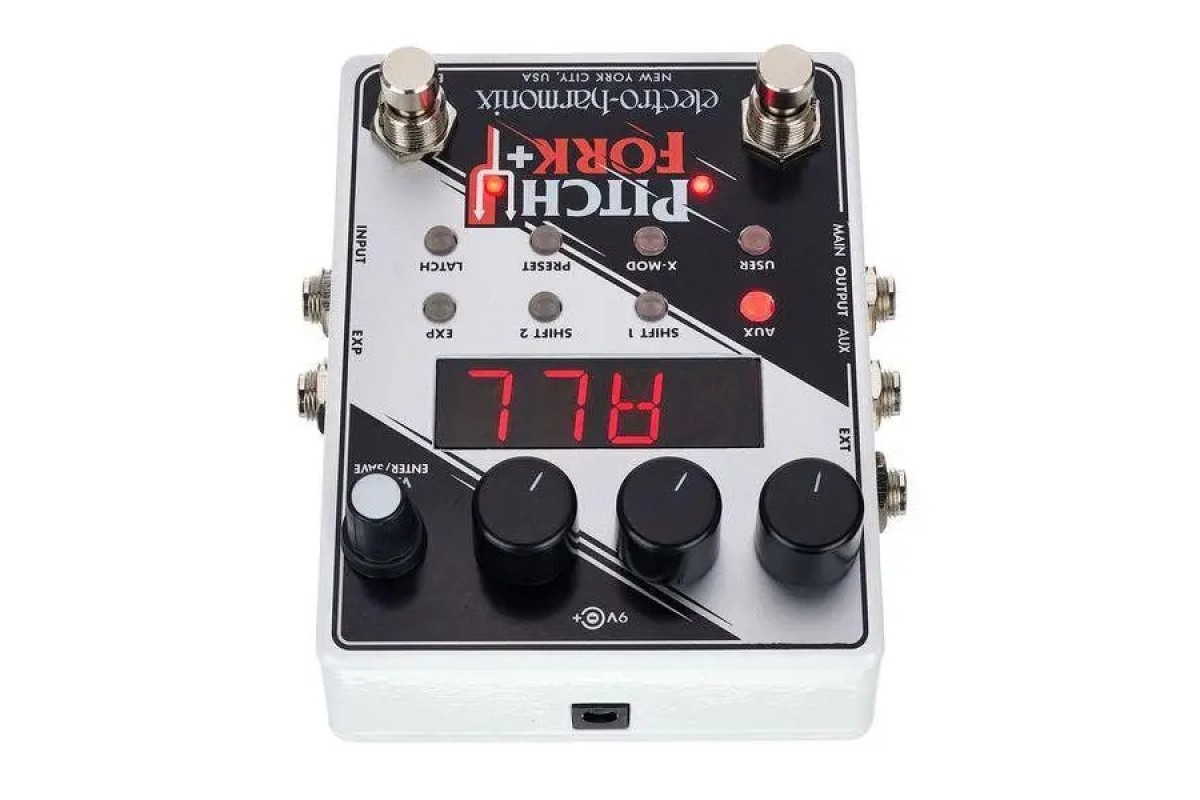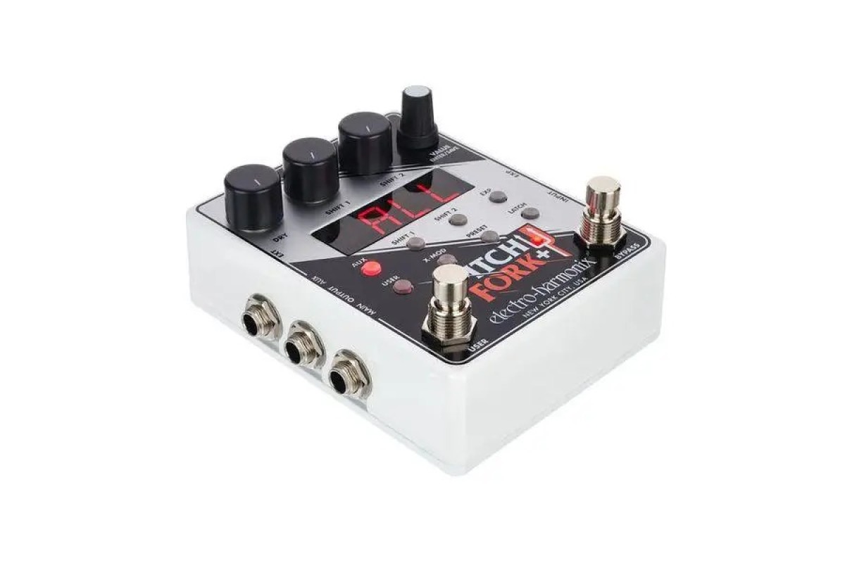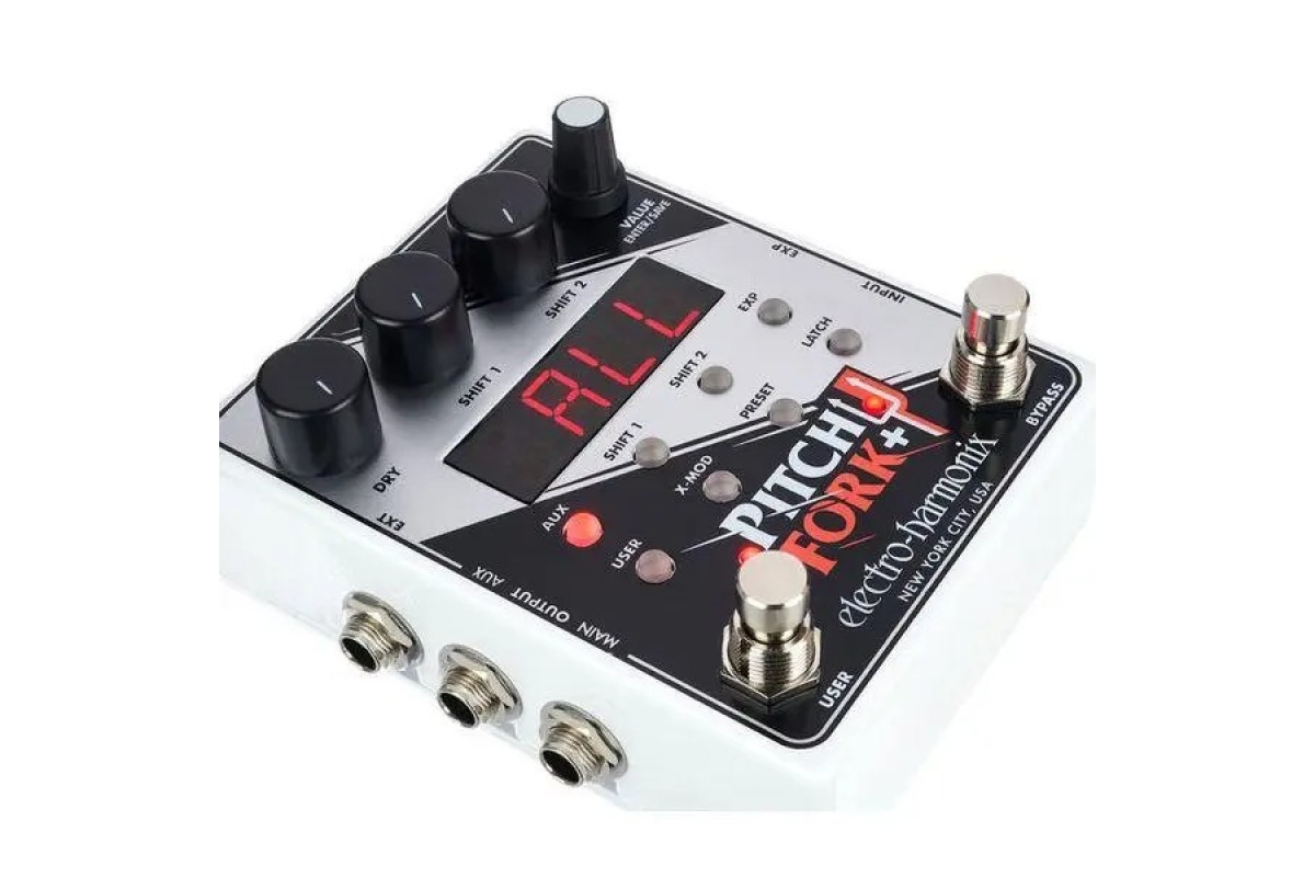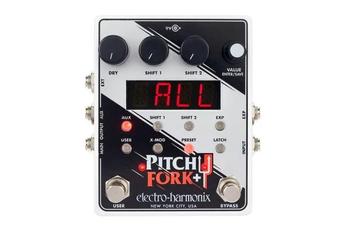 Electro-harmonix Pitch Fork+ — подвійний поліфонічний пітчшифтер/гармонайзер із повним контролем над керуванням кожним пітчшифтером. Збереження до 100 пресетів. Вхід для педалі експресії. Aux вихід. Electro-Harmonix Pitchfork + — розширена версія однієї з найуспішніших педалей компанії останньої за останні десять років, яка продовжує і веде на новий ступінь ідею швейцарського ножа від світу вихованчшифтерів у компактному корпусі. Під знаком плюс тут ховається можливість збереження 100 користувацьких пресетів, Aux-вихід, можливість під'єднання футсвітча, а також розширені можливості керування експресією та CV-параметрами, що дають змогу використовувати зовнішні контролери ще експериментальнішим і новаторським способом. Якщо перша версія Pitchfork була ідеальним рішенням для невеликих бордів, то старший брат готовий потягатися за місце у чималих сетазах навіть із найпередовішими конкурентами!