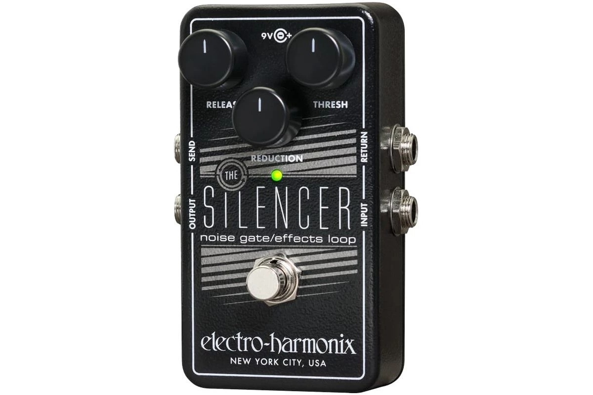 EHX Silencer – погляд Майка Метьюса та Ко на ідею нойз-гейту. Він працює за досить звичним принципом. Педаль оцінює амплітуду сигналу у кожен час і починає її послаблювати, щойно амплітуда падає нижче деякого порогового значення. Але в чому різниця, якщо алгоритм той самий? Різниця – у деталях! Адже завданням цього приладу є акуратне шумозаглушення, яке не трансформуватиме гітарну партію! І тут Silencer чудово справляється. Три потенціометри регулювання - Threshold, Release і Reduction - дозволяють досягти дуже природного нойз-гейта, що не втручається в динаміку гри. До речі, педаль можна використовувати у двох режимах – і як інлайн нойз-гейт, і як нойз-гейт із петлею.