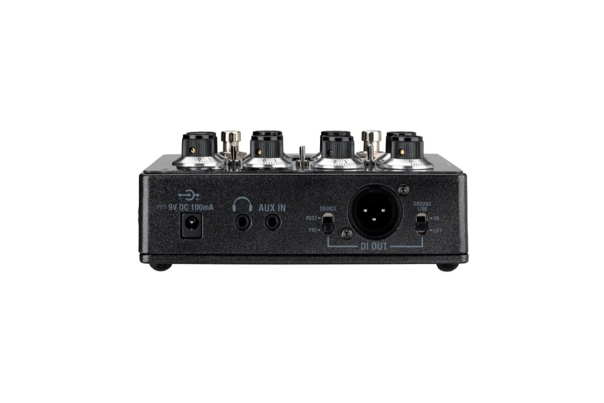 Входи та виходи розташовані на бічних панелях та позаду. DB-PRE оснащена активним та пасивним входами, FX-петлею для підключення ефектів між преампом та вихідним секціями, виходом Link. Все це на роз’ємах TRS 1/4”. Також педаль має DI вихід на збалансованому роз’ємі XLR, Aux вхід та вихід для на вушників на TRS 1/8”. Світлодіодні індикатори стану, високоякісні компоненти перемикання та безшумна робота перемикачів забезпечують зручність і надійність використання.
