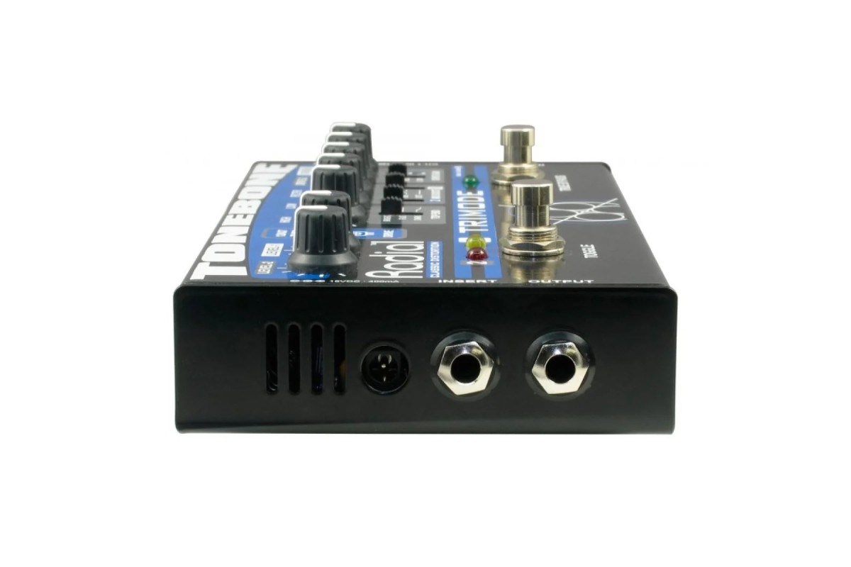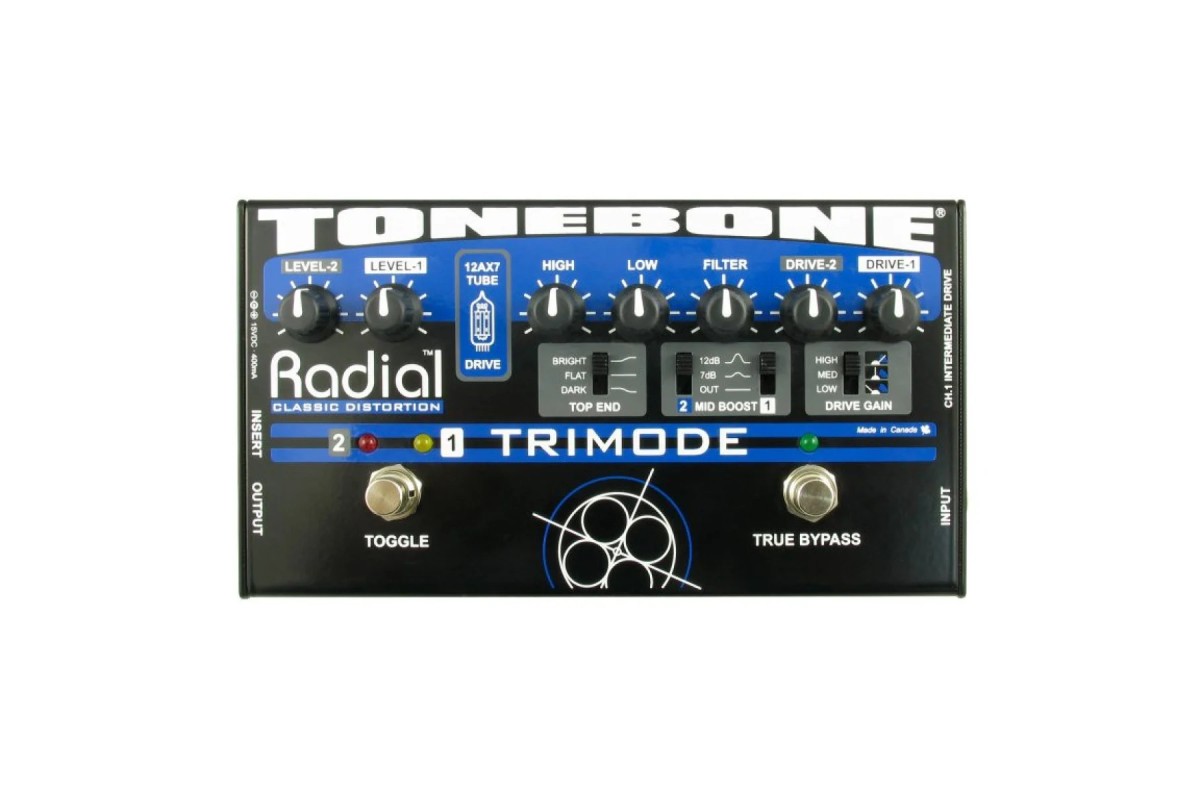Radial TriMode — це ламповий передпідсилювач-дисторшн, який об'єднує чистий, ритм-канал і хай-гейн звучання в одній компактній педалі. Завдяки лампі 12AX7 та широким можливостям еквалізації, TriMode дозволяє створювати теплі, насичені гармоніками спотворення у стилі класичних американських підсилювачів.