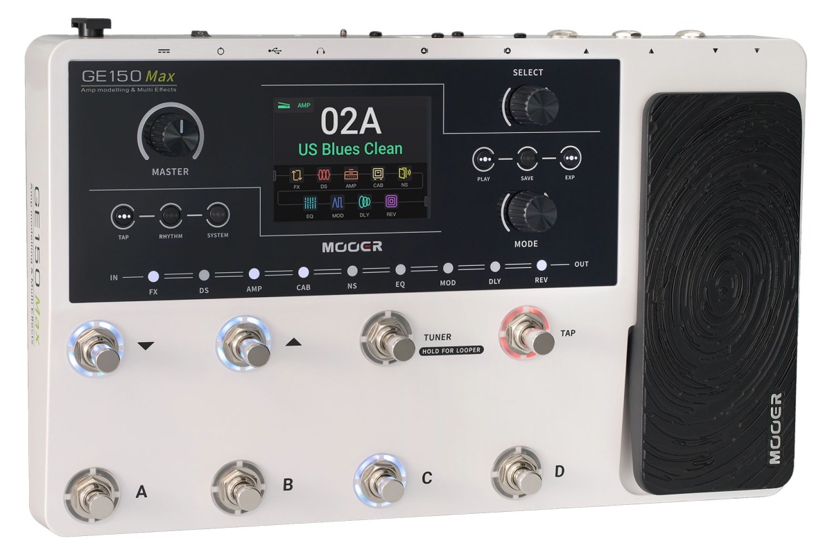 MOOER GE150 Max — це професійний моделюючий процесор ефектів, створений для гітаристів, які шукають потужне, гнучке та інтуїтивне рішення для сцени, студії або репетицій.