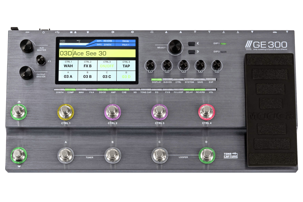 GE300 є новою флагманської моделлю від MOOER і включає в себе 108 цифрових моделей підсилювачів, заснованих на технології нелінійного моделювання та забезпечують широкий діапазон неймовірно точних автентичних звучань плюс 164 високоякісних ефекту, що охоплюють всі основні напрямки, від ваших улюблених педалей ефектів, плагінів до студійних приладів. 43 додаткові моделі гітарних кабінетів будуть попередньо завантажені в пристрій, при цьому у нього також реалізований повнофункціональний IR-завантажувач імпульсів кабінетів, з дозволом до 2048 семплів.