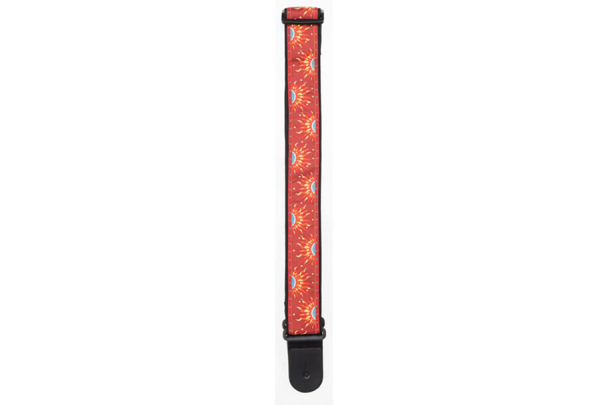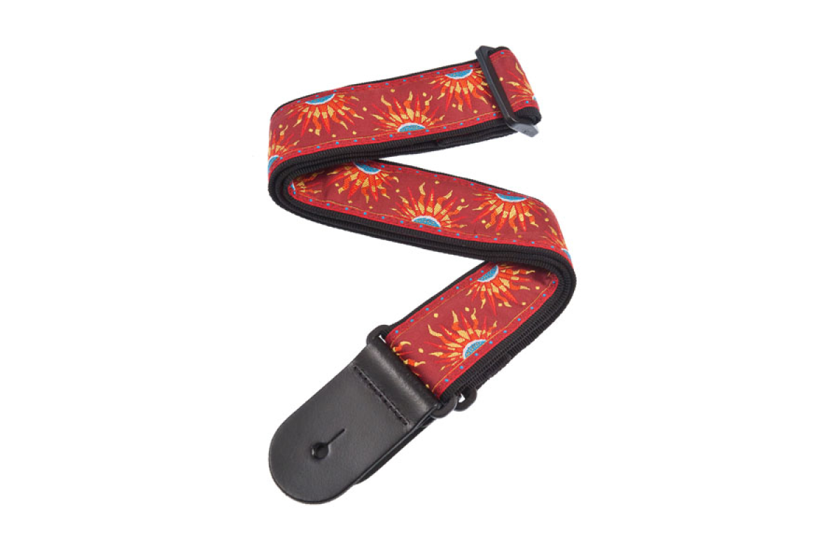 Гітарний ремінь D'Addario 50E09 Nylon Woven Guitar Strap (Sun) виготовлений з міцного нейлону для комфорту та довговічності. Має регульовану довжину 35"–59,5" (89–151 см), ширину 2" (5,08 см) та шкіряні наконечники для надійного кріплення до гітари. Ідеальний аксесуар для акустичних та електрогітар. Колір червоний (Sun), виробництво – Канада.